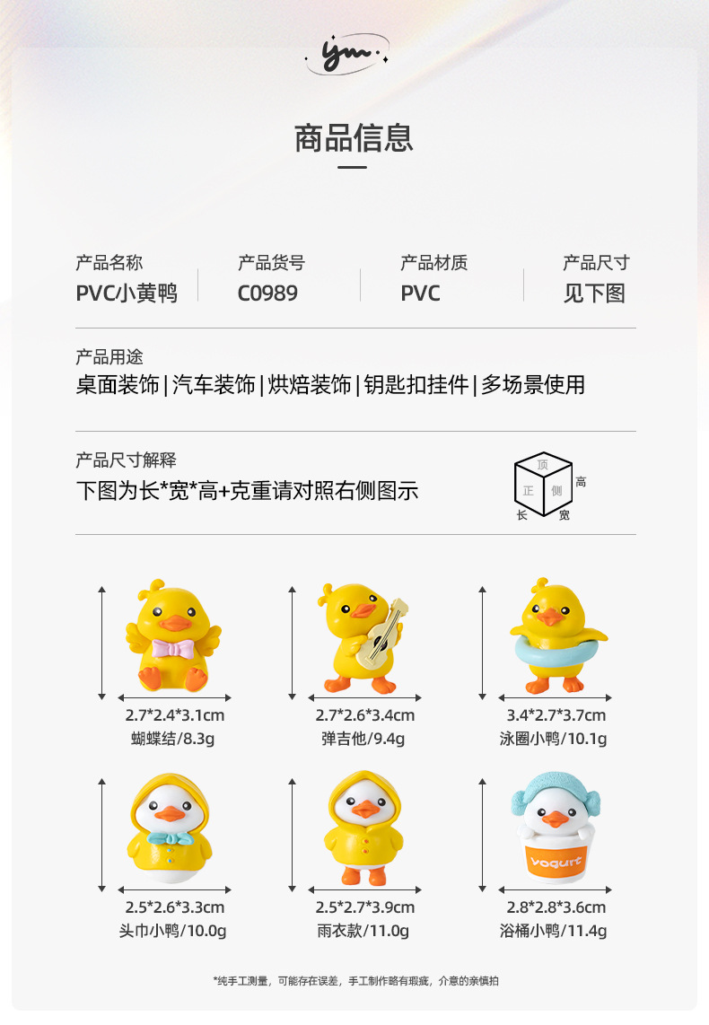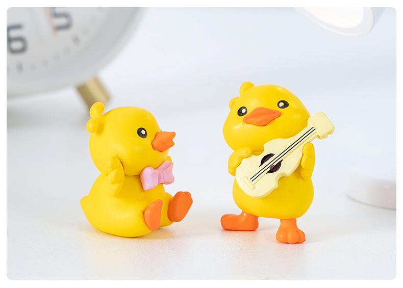창조적 인 귀여운 비옷 기타 노란 오리 DIY 장식 블라인드 가방 액세서리 마이크로 풍경 데스크탑 자동차 장식품
