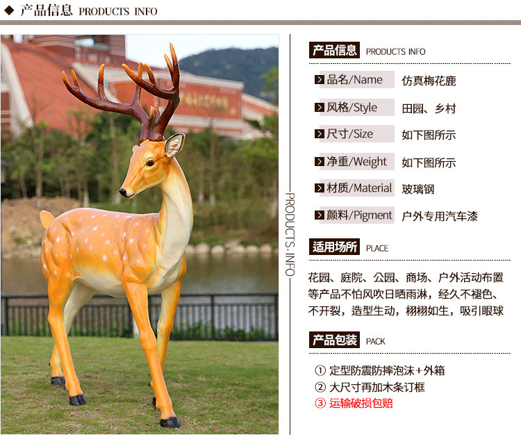 시뮬레이션 시카 사슴 유리 섬유 강화 플라스틱 조각 장식품 풍경 조각 야외 안뜰 잔디 장식 동물 모델스토어 가기
