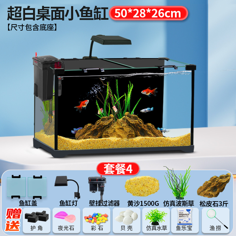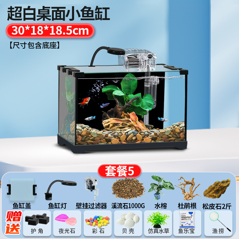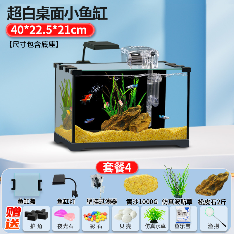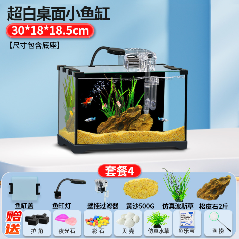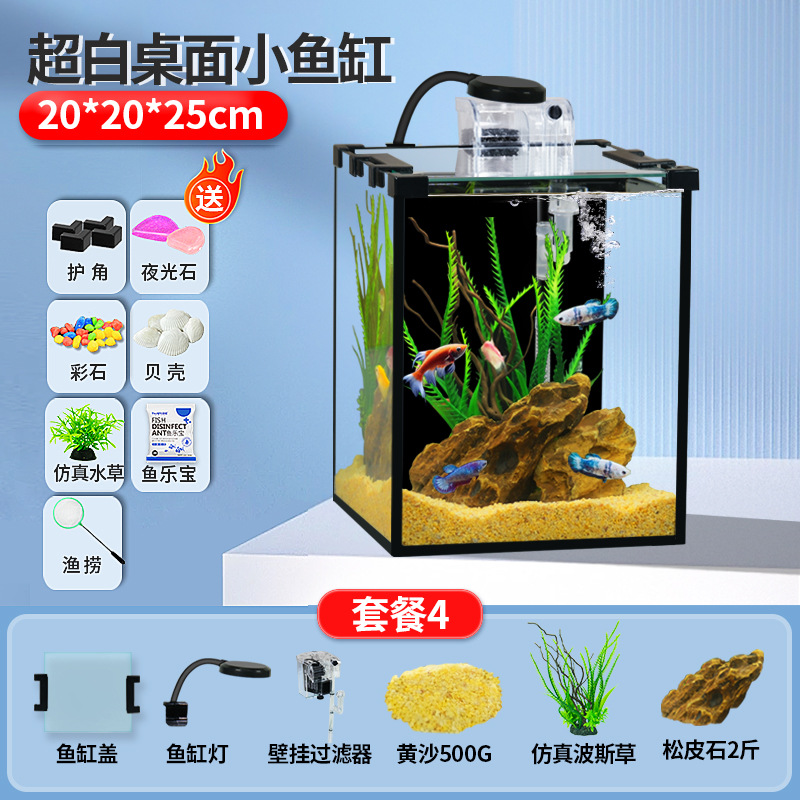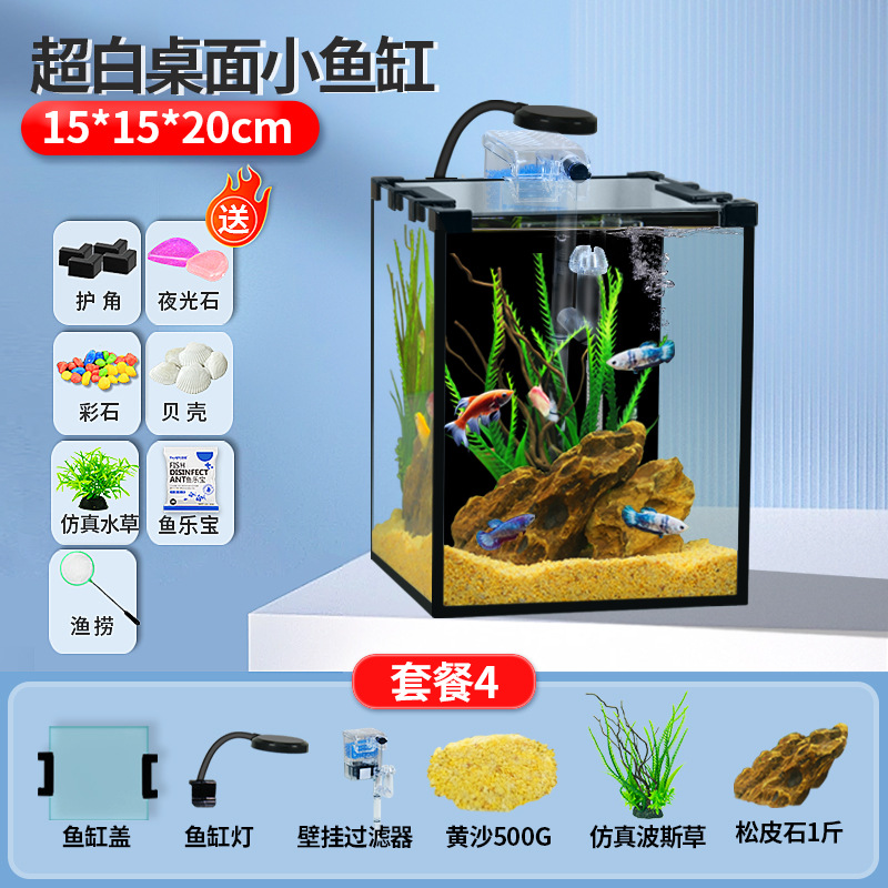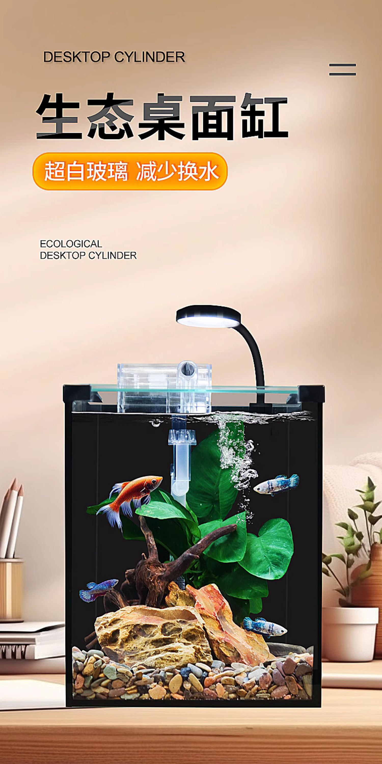 데스크탑 거실 작은 물고기 탱크 거북이 생태 슈퍼 화이트 투명 유리 탱크 풍경 미니 홈 관상용 물고기 탱크스토어 가기
