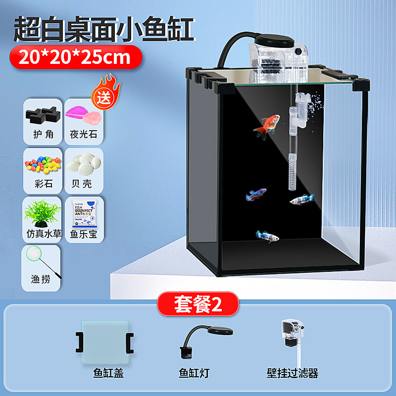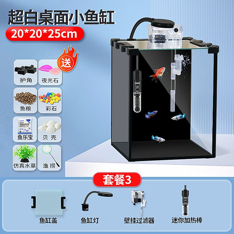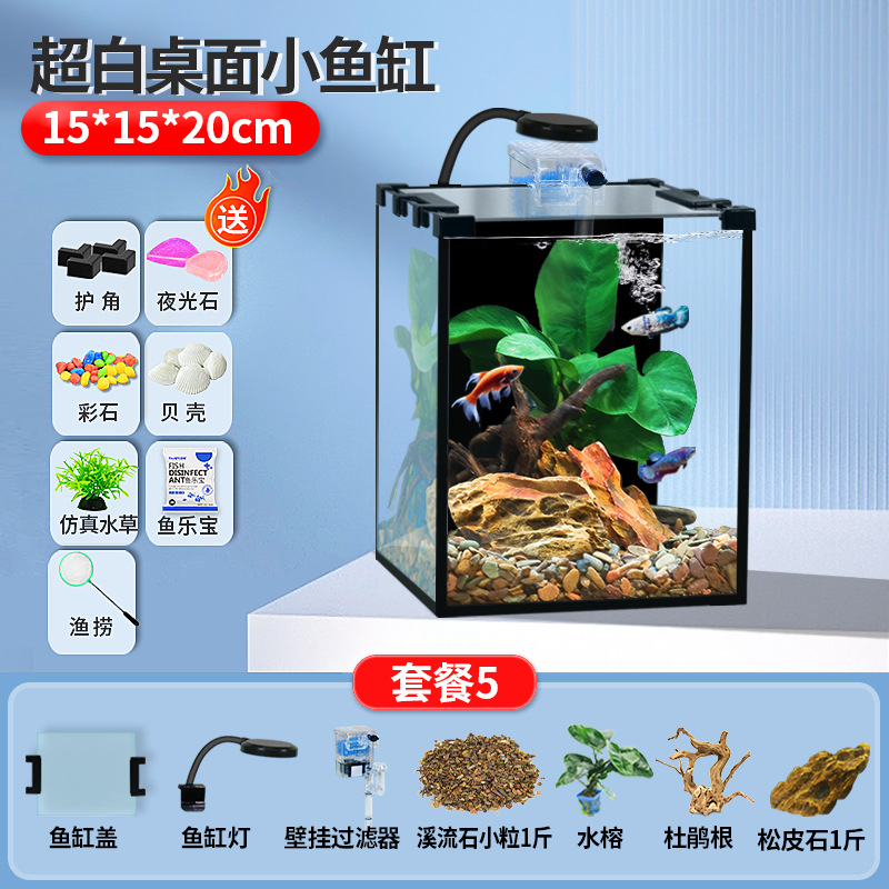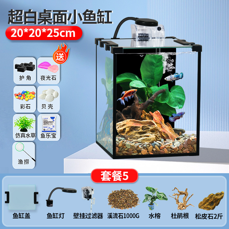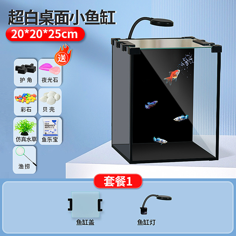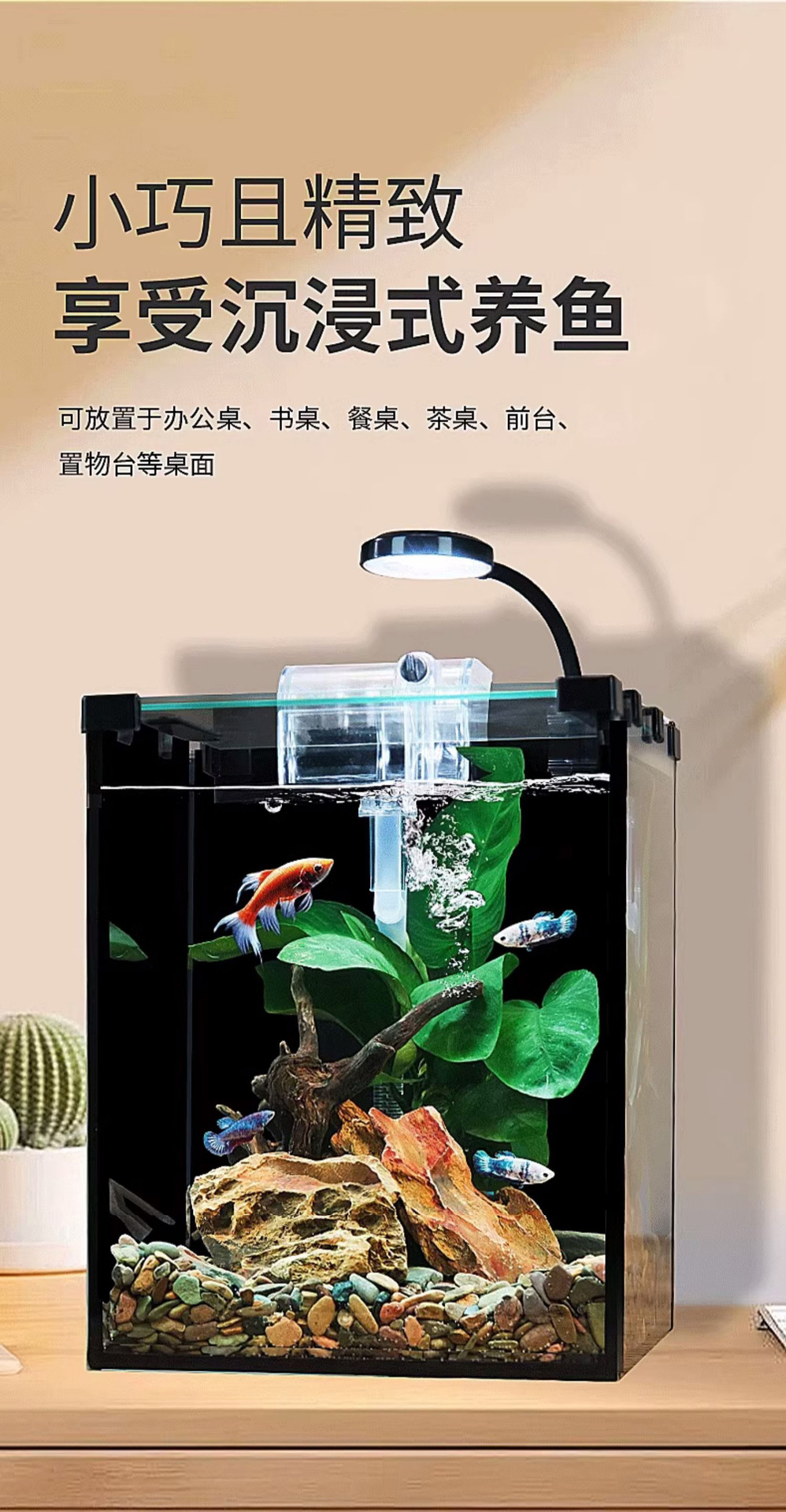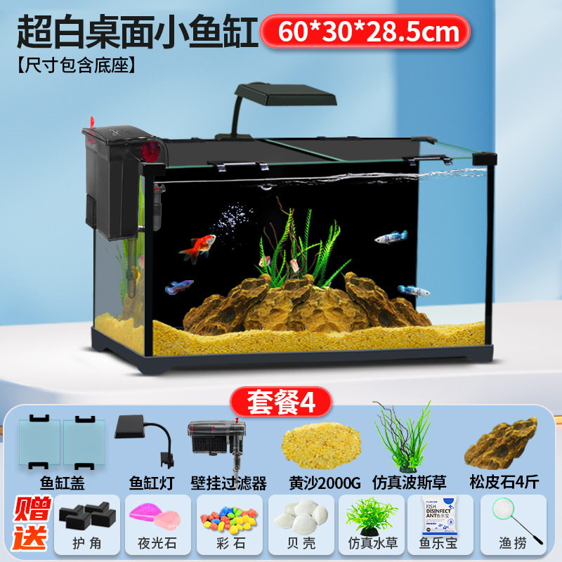 데스크탑 거실 작은 물고기 탱크 거북이 생태 슈퍼 화이트 투명 유리 탱크 풍경 미니 홈 관상용 물고기 탱크스토어 가기