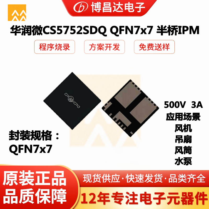 원래 정품 중국 자원 마이크로 CS5752SDQ QFN7x 7 500V 3A 하프 브리지 IPM 적용 램 계획스토어 가기