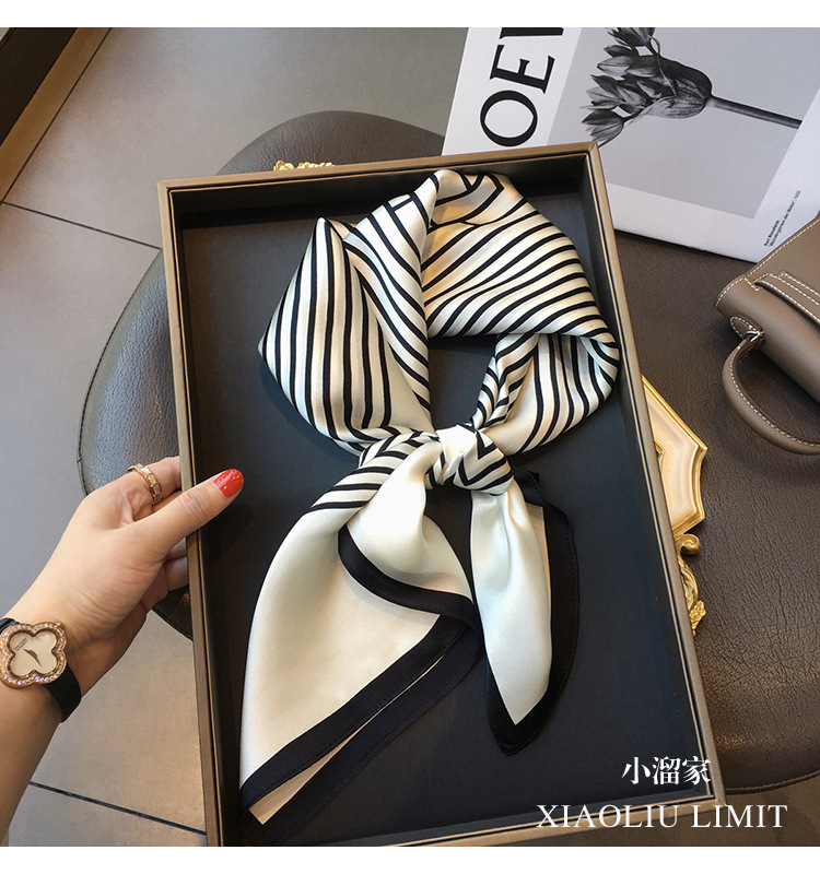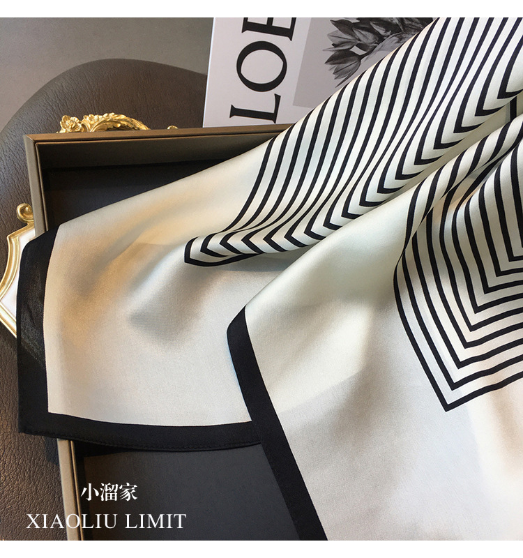 항저우 실크 100 뽕나무 실크 스카프 북유럽 단순 줄무늬 실크 스카프 여성 중형 스퀘어 스카프 목도리
