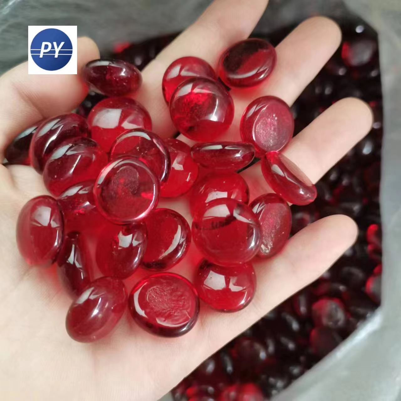 큰 빨간 유리 플랫 구슬 17-19mm 기본 색상 비 염색 창조적 인 조경 장식 수족관 조경 스티커