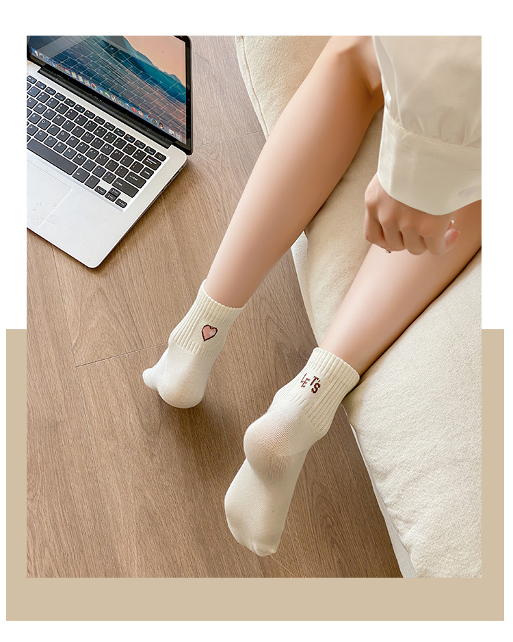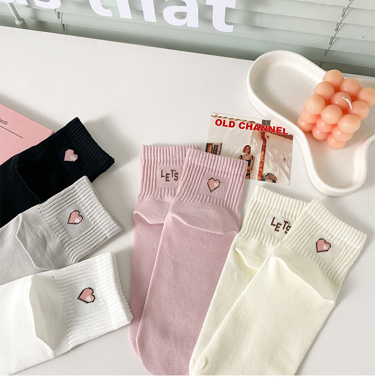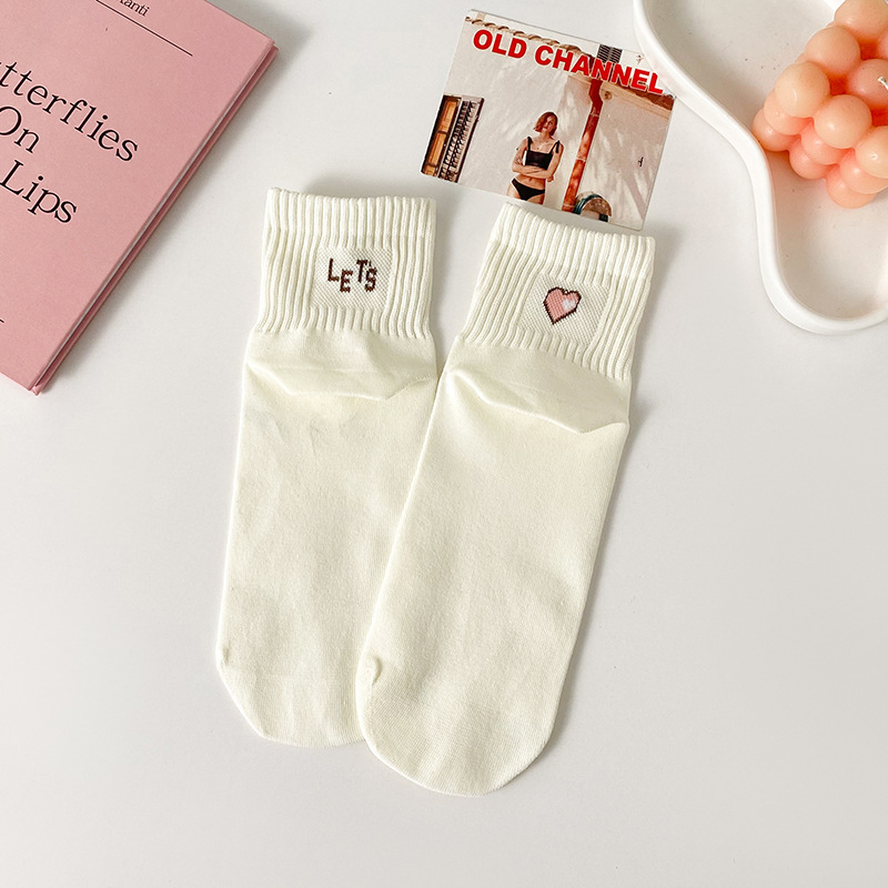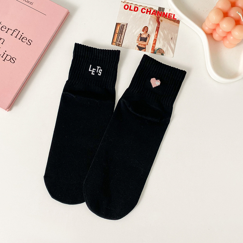 양말 여자 사계절 뒤꿈치 미드 양말 여름 올 매치 로퍼 여자 편지 면 양말 캐주얼 양말스토어 가기