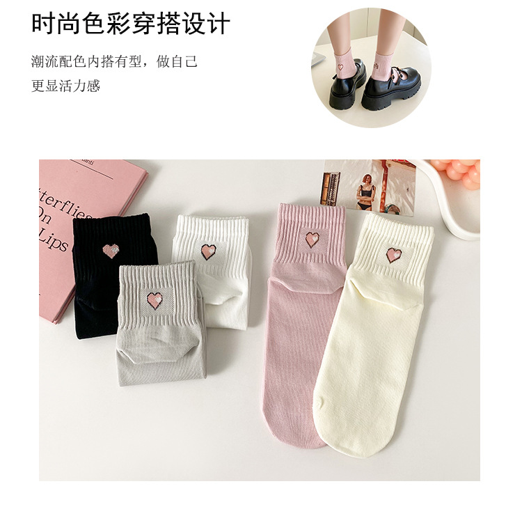양말 여자 사계절 뒤꿈치 미드 양말 여름 올 매치 로퍼 여자 편지 면 양말 캐주얼 양말