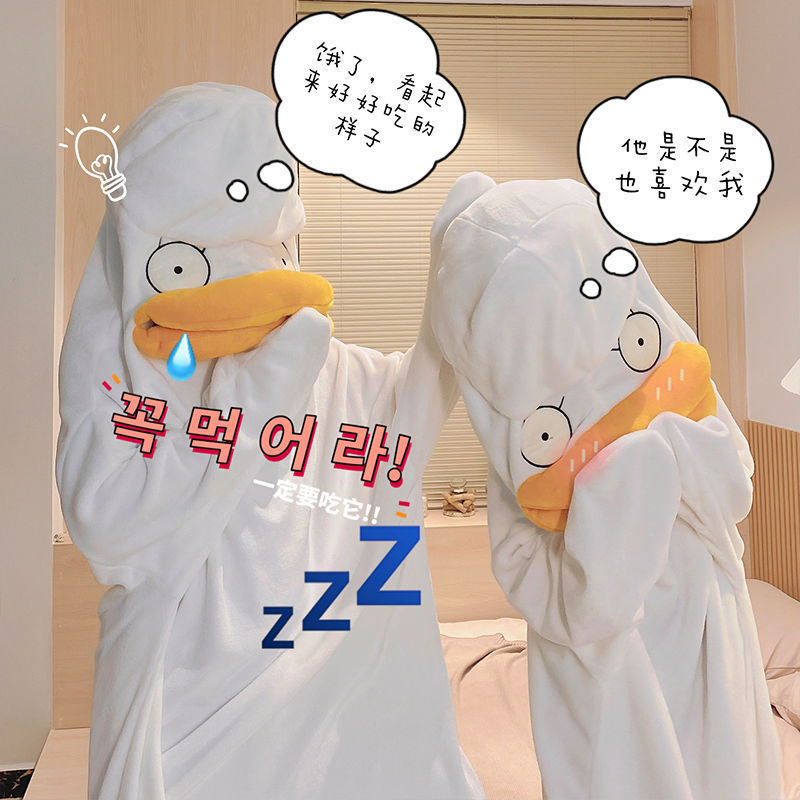 실버 소울 엘리자베스 오리 잠옷 여성의 겨울 원피스 웃긴 커플 슬리핑 가방 귀여운 만화 플란넬 잠옷스토어 가기