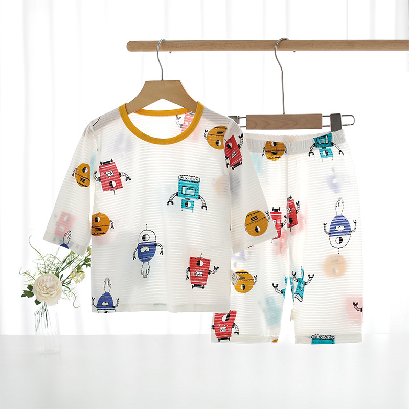 아동용 잠옷, 남아 여아 가정복, 에어컨 의류 세트, 어린이 남아용 긴팔 순면 무봉제 얇은 아동복스토어 가기