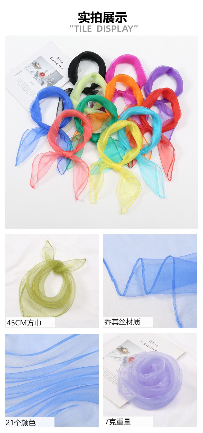 새로운 폴리 에스터 버라이어티 스테이지 작은 스카프 솔리드 컬러 쉬폰 어린이 댄스 스카프 45 작은 스퀘어 스카프 동반 선물 도매