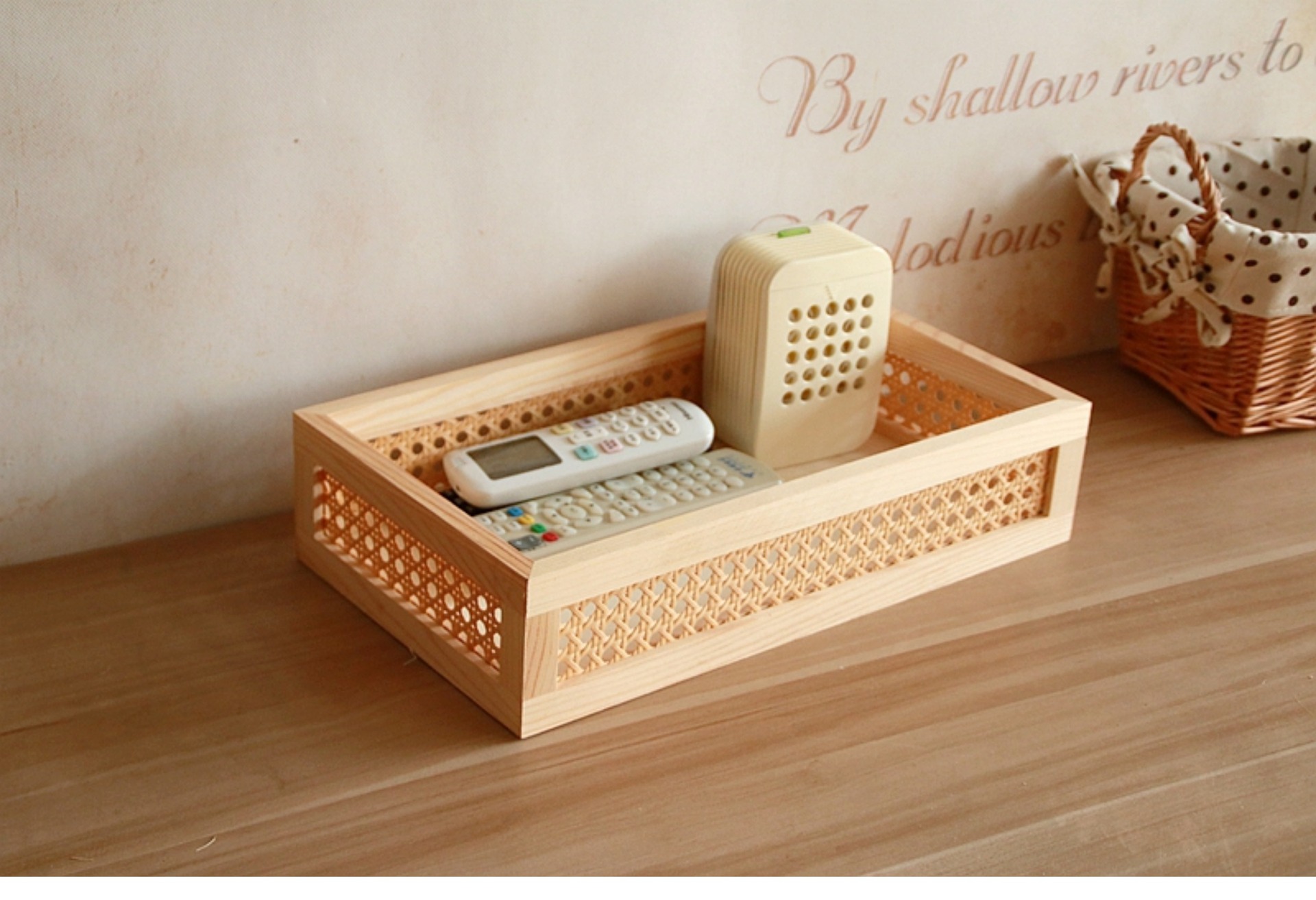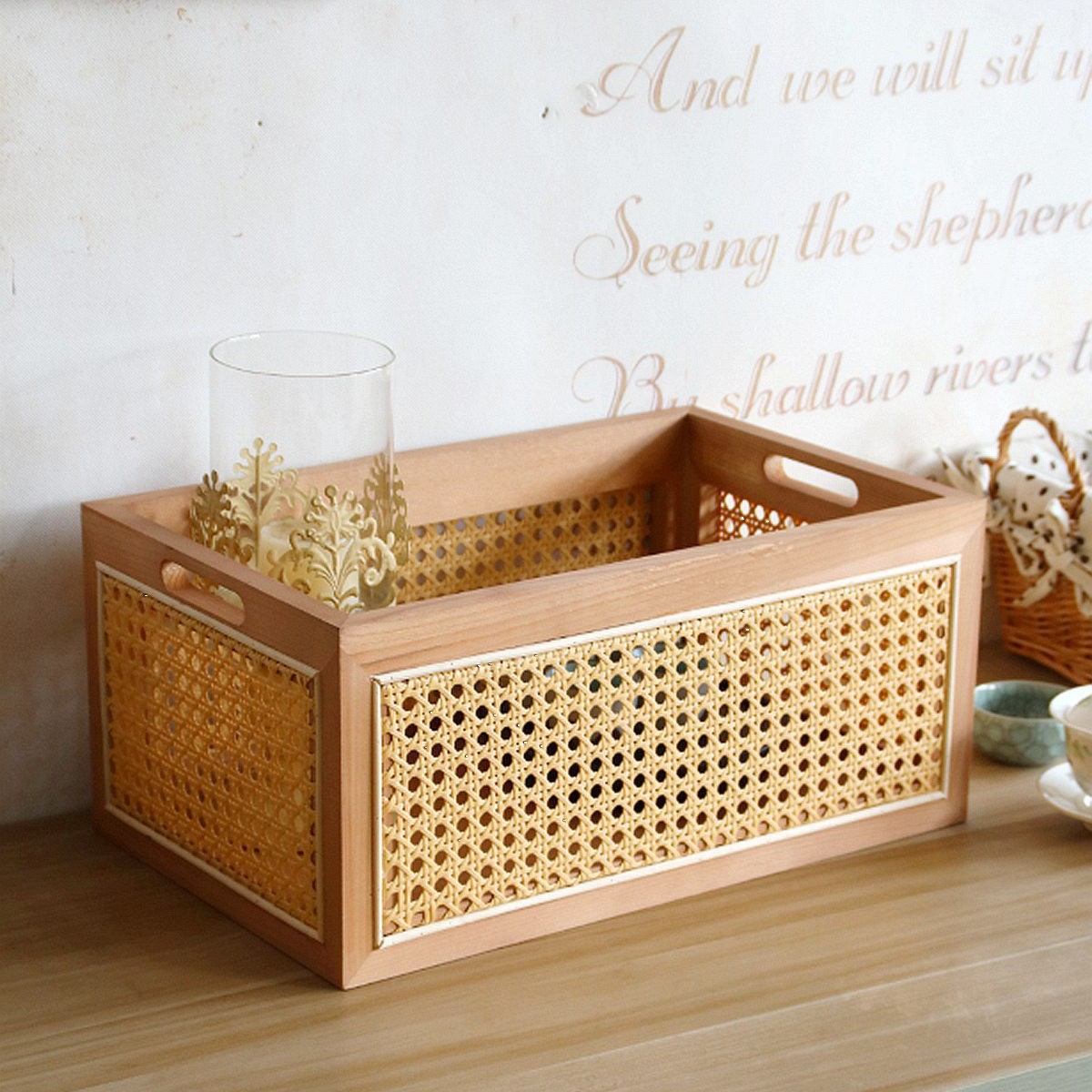 일본식 등나무 짠 단단한 나무 저장 상자 커피 테이블 스낵 상자 식료품 상자 장난감 대나무 짠 저장 바구니 보관 바구니
