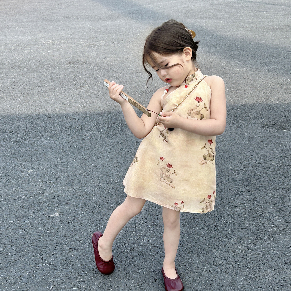 소녀 원피스 여름 새로운 중국 복고풍 목 원피스 cheongsam 치마 어린이 머리카락 세대스토어 가기