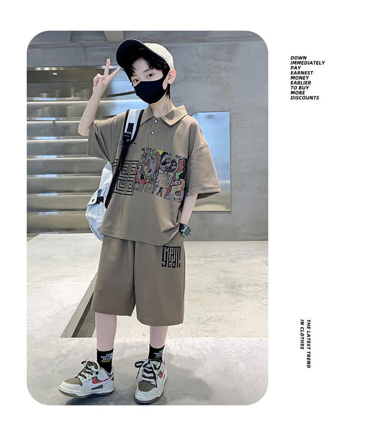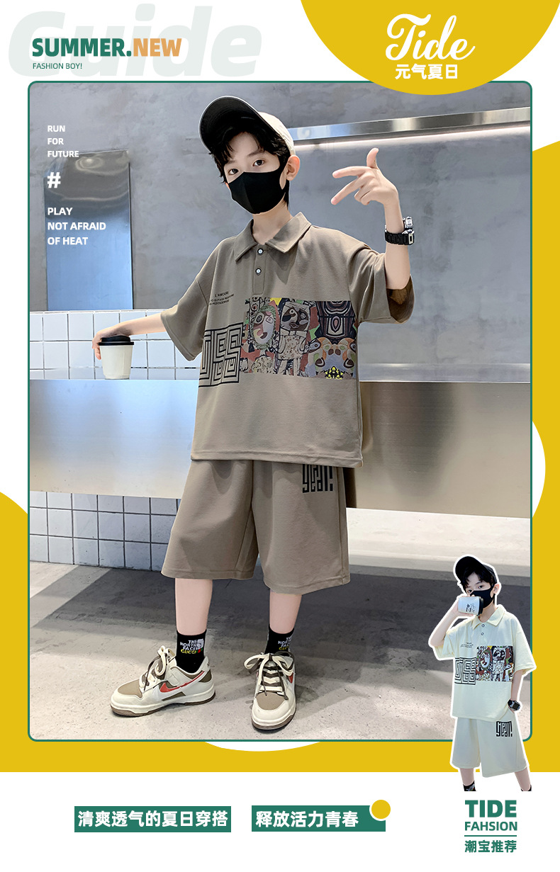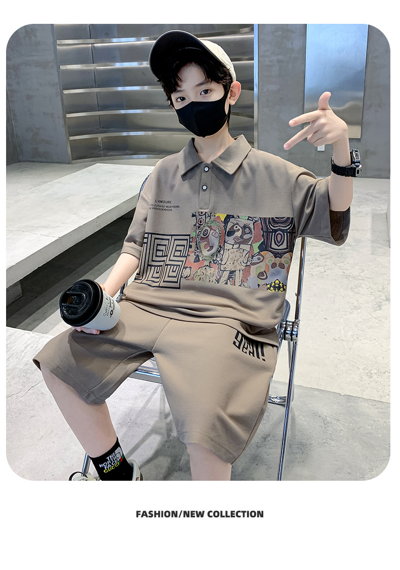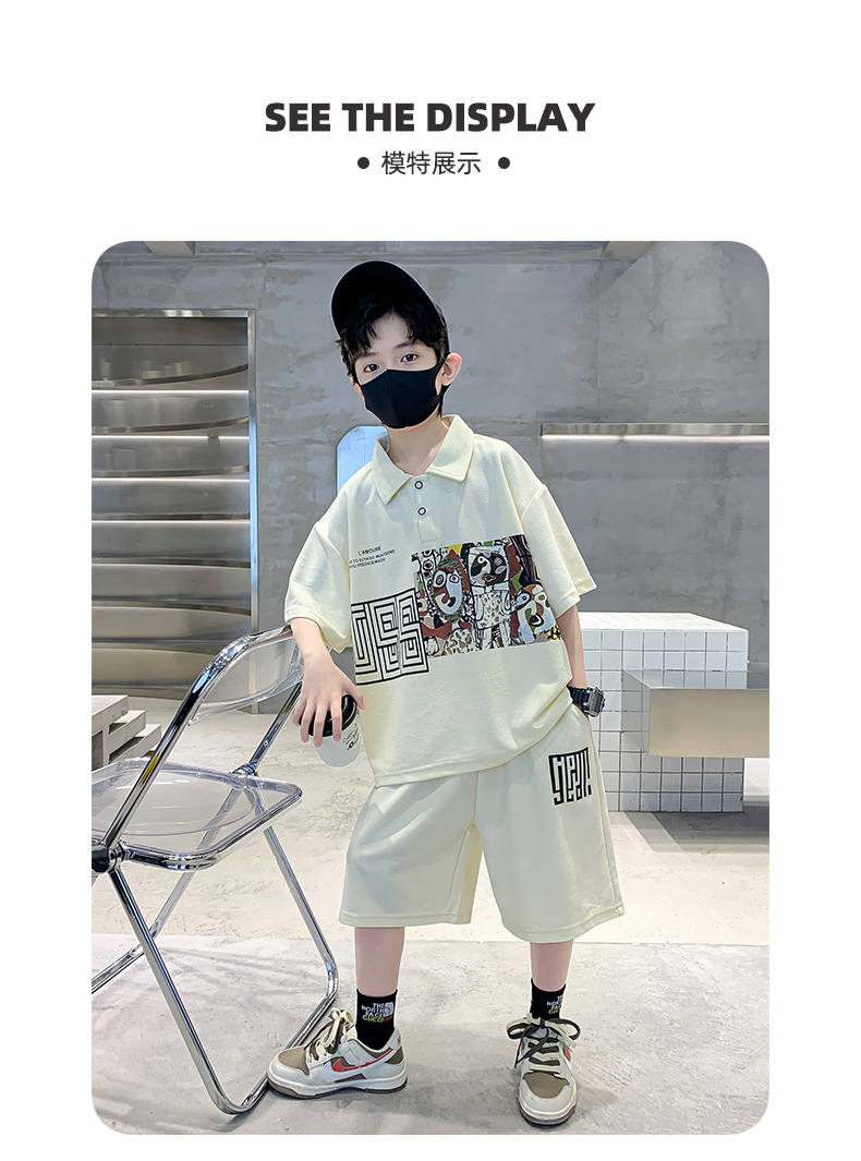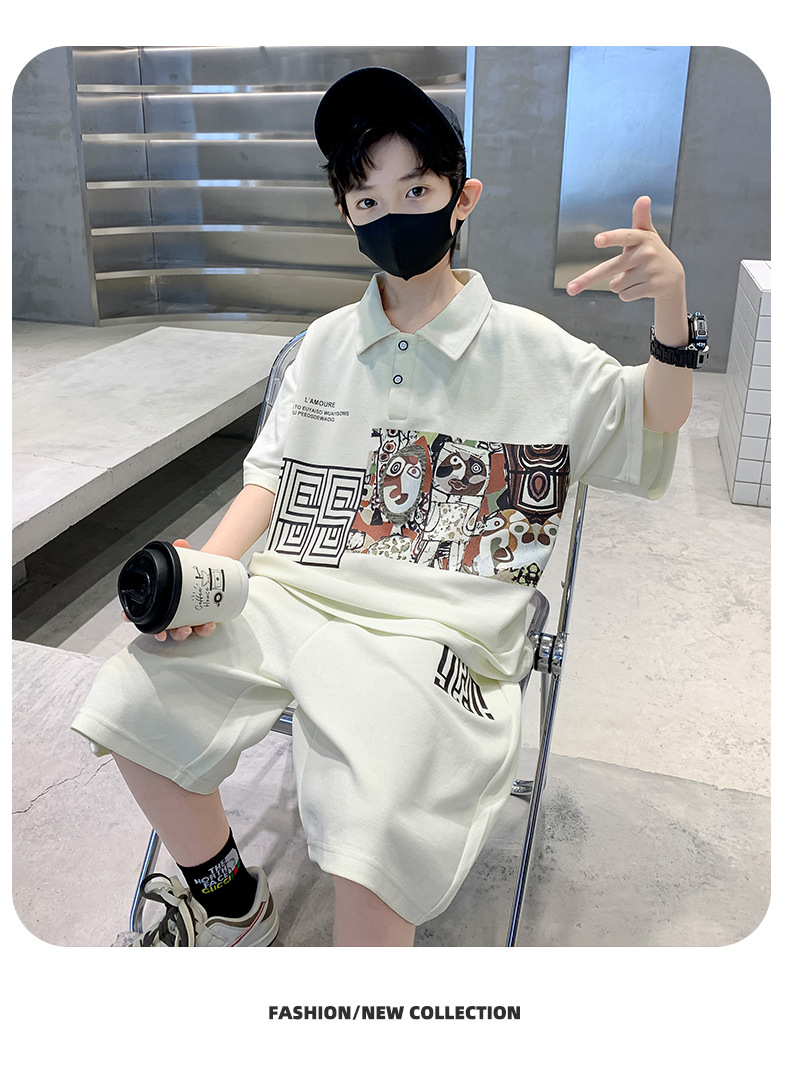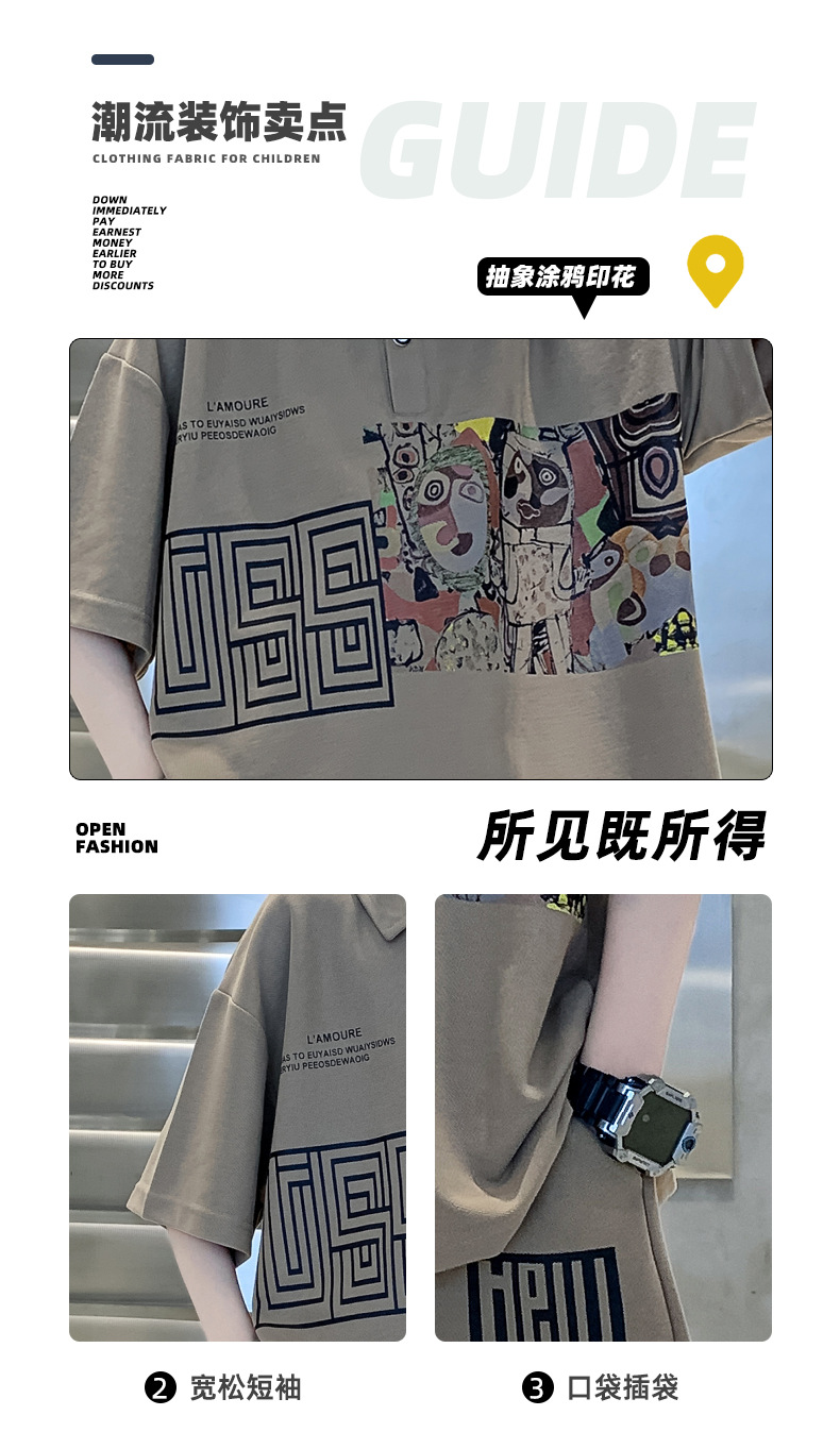 남자들의 여름 반팔 폴로 셔츠 티셔츠 세트 2024 여름 새 중간 길이 바지 투피스 세트스토어 가기