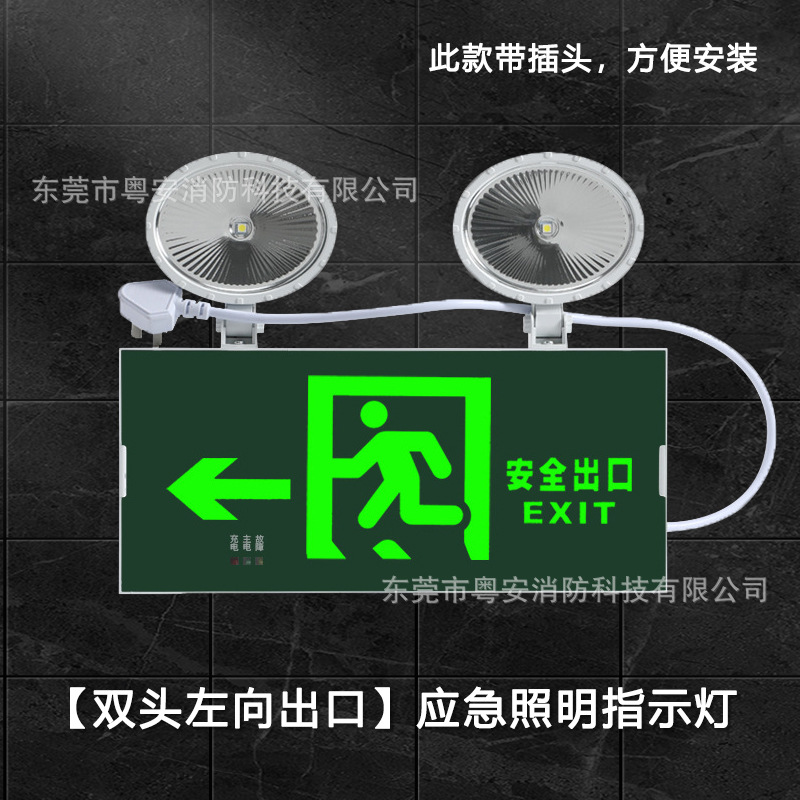 Minhua 새로운 국가 표준 화재 비상 조명 LED 안전 출구 표시판 2 대 1 대피 양두 조명스토어 가기