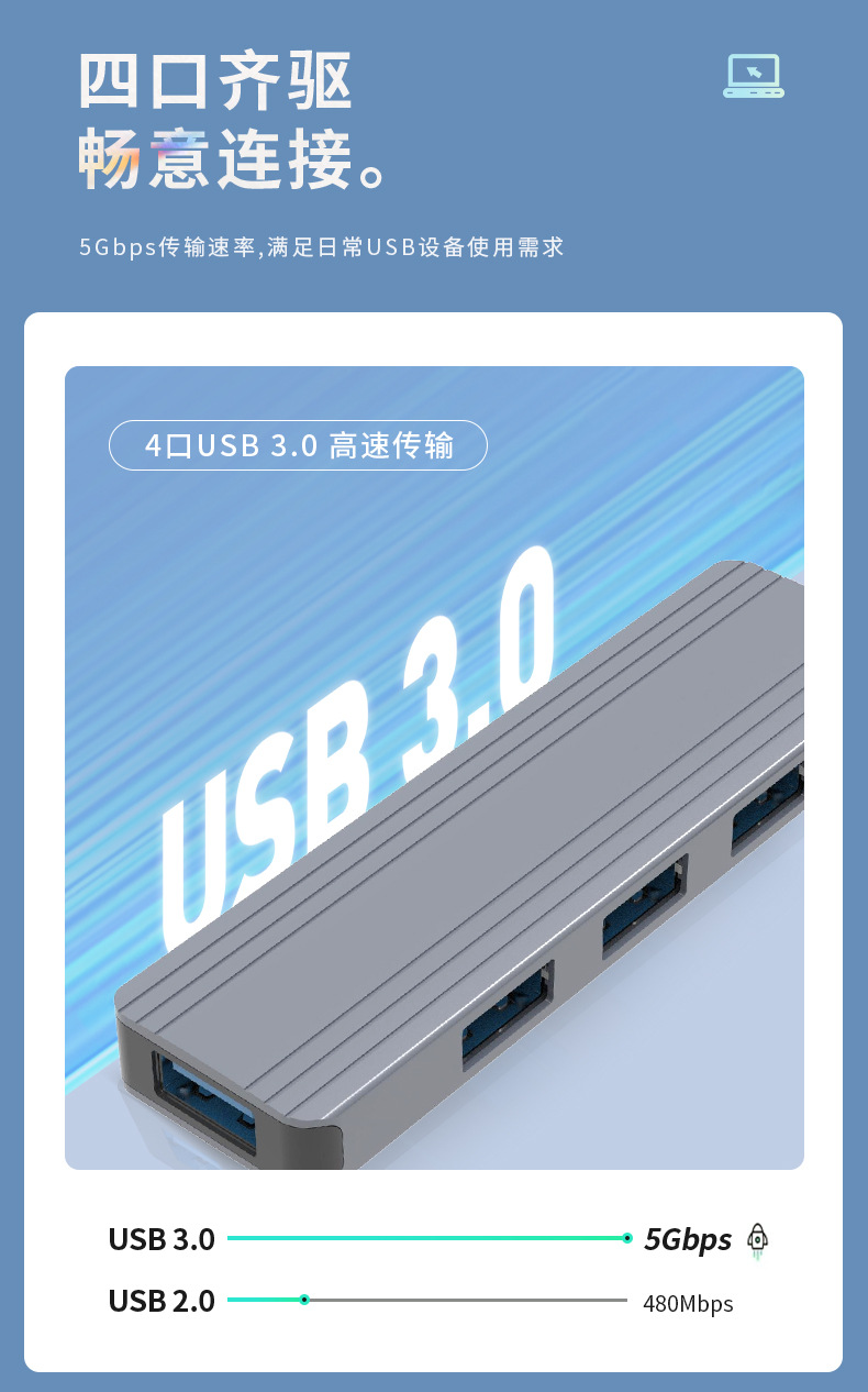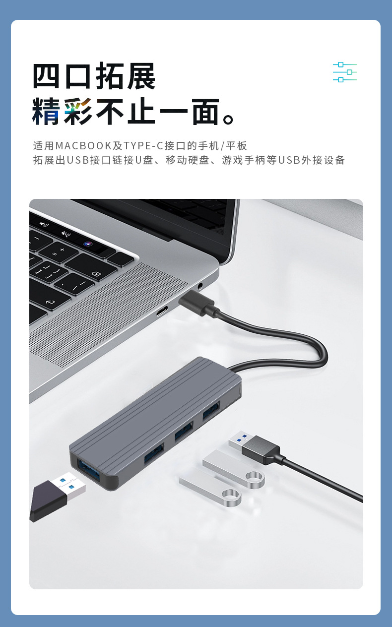 국경 간 개인 모델 Type-C 확장 도크 4 대 1 USB3.0 허브 다기능 컴퓨터 태블릿 알루미늄 쉘 허브스토어 가기