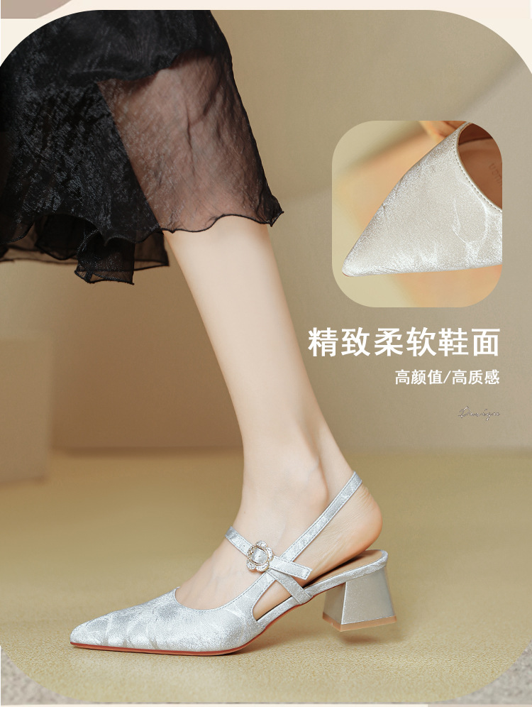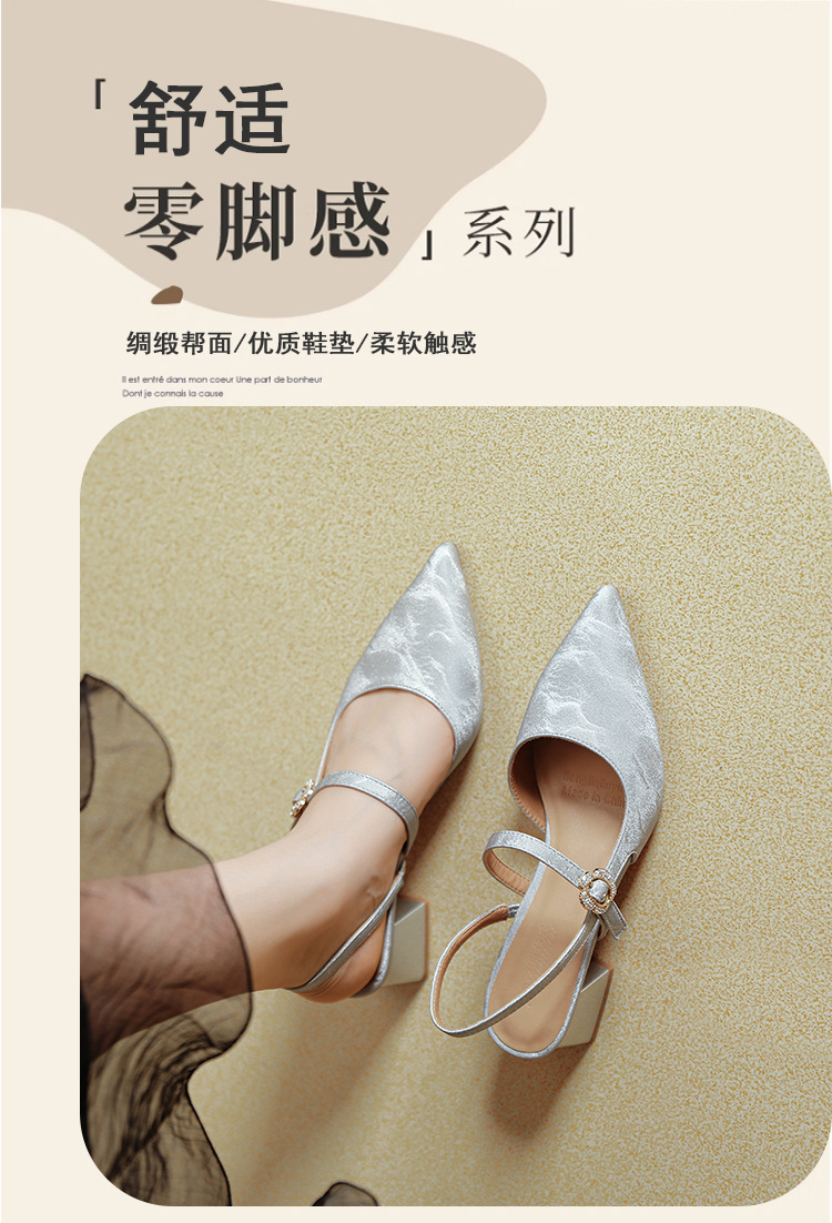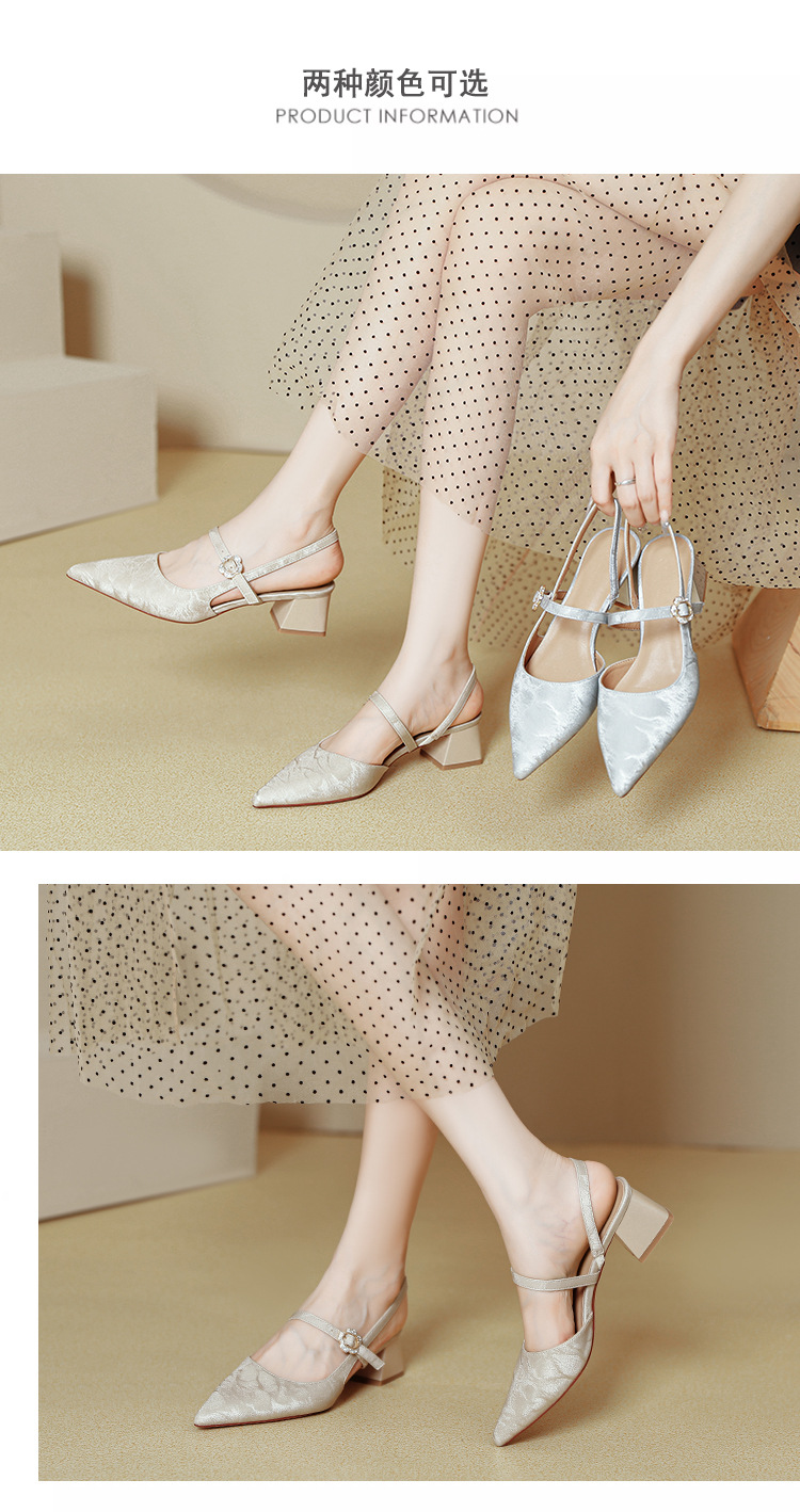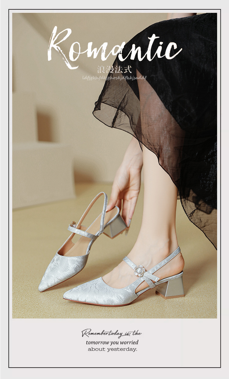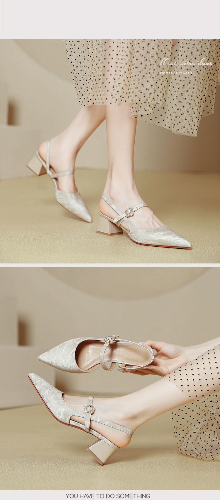 발가락 샌들 여성용 두꺼운 힐 2024 새로운 여름 프랑스 스타일 메리 제인 신발 미드 힐 포인팅 힐스토어 가기