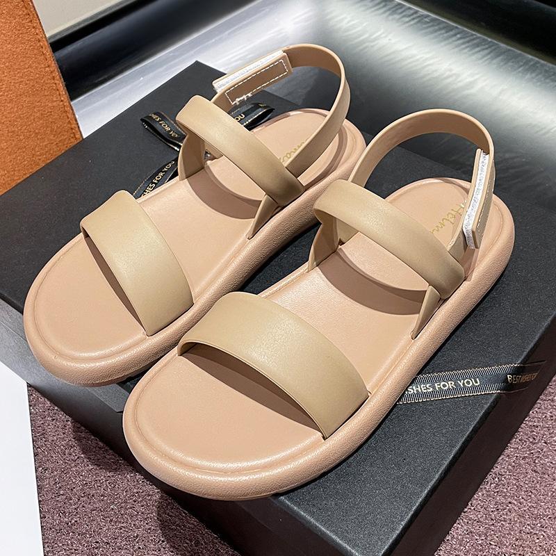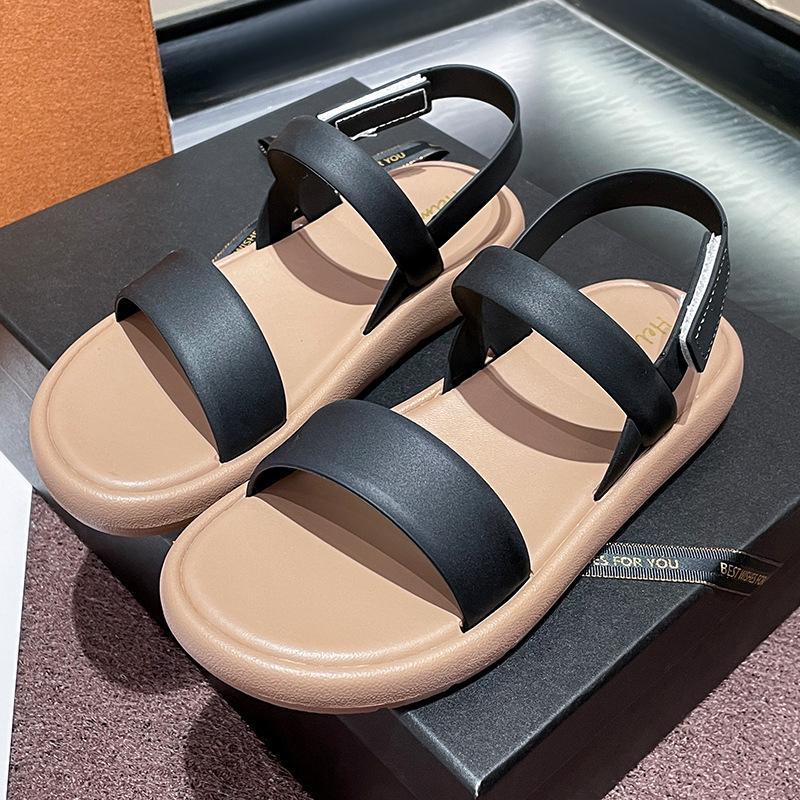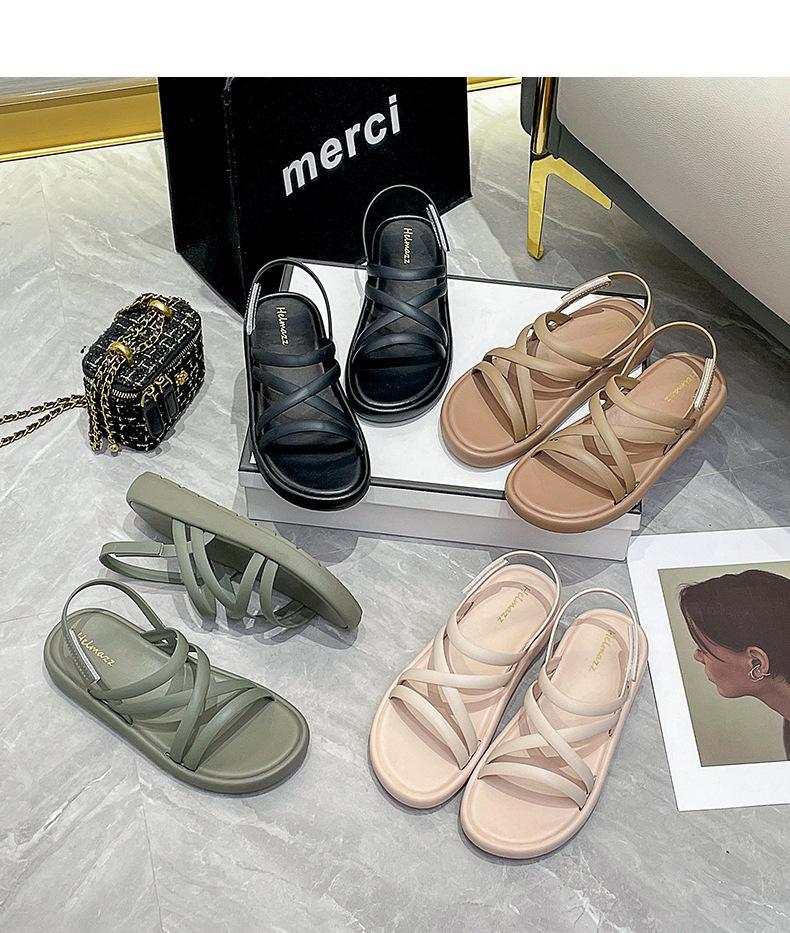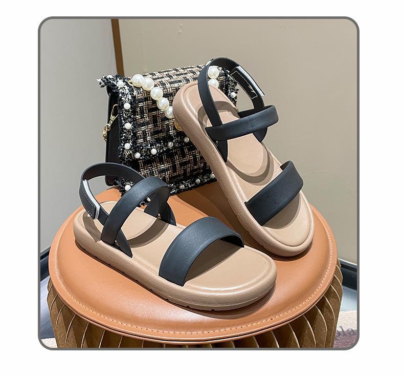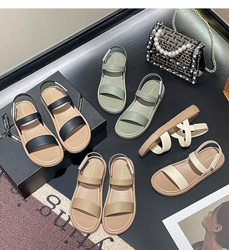샌들 여성용 여름 외부 착용 2024 새로운 스타일 플랫 힐 소프트 하단 샤넬 스타일 여름 원피스 우아한 로마 신발스토어 가기