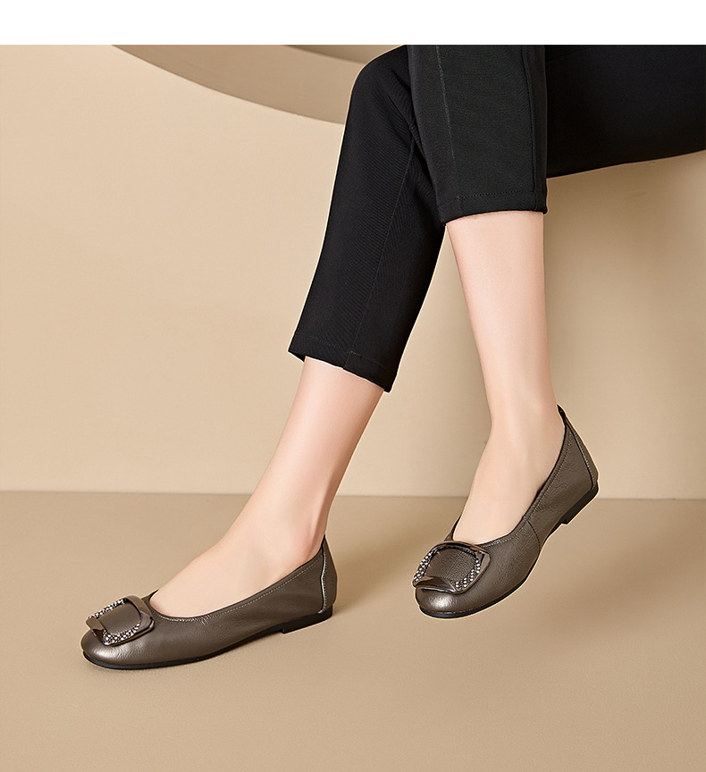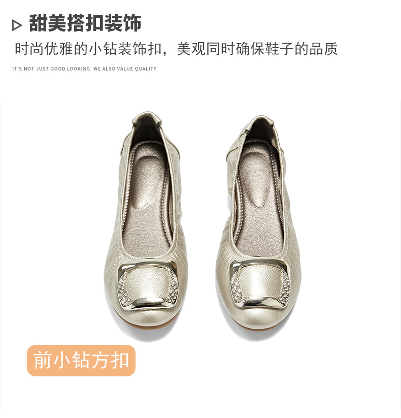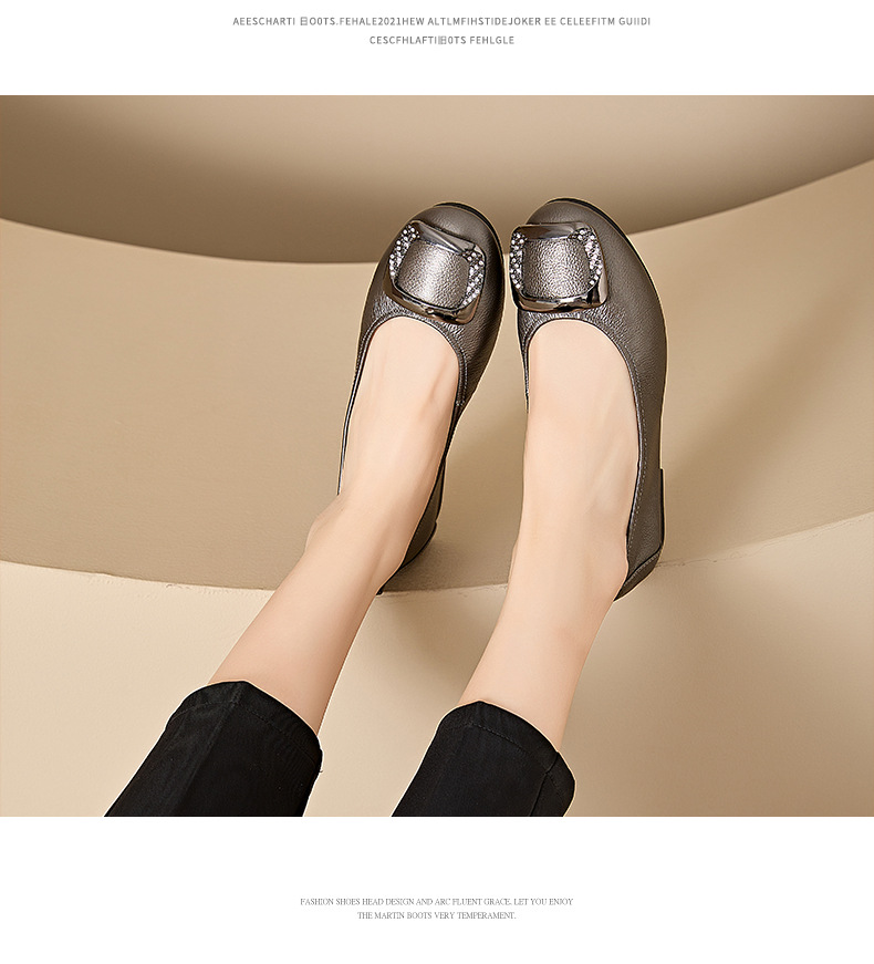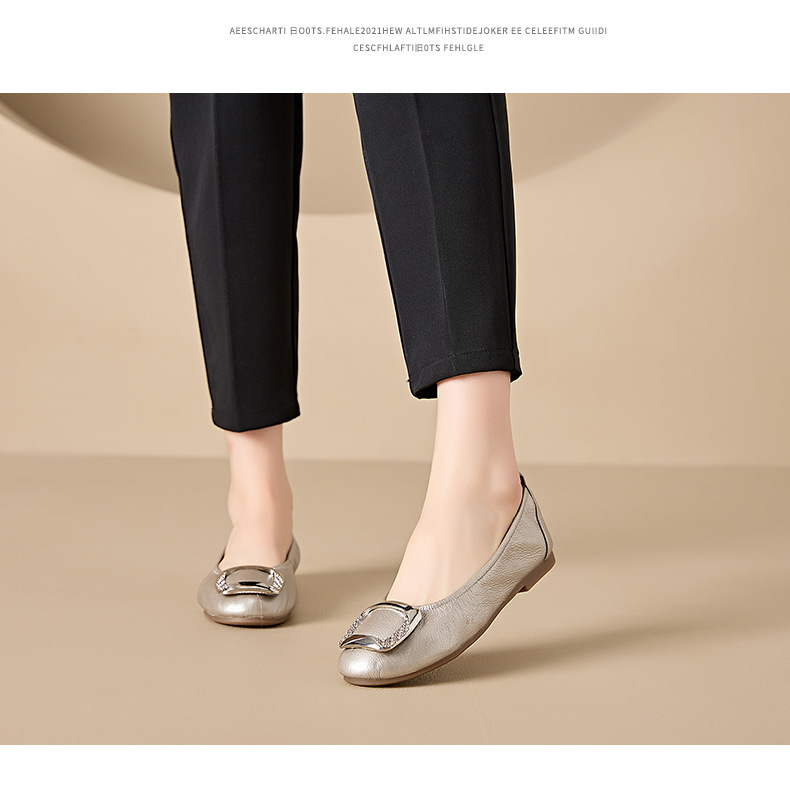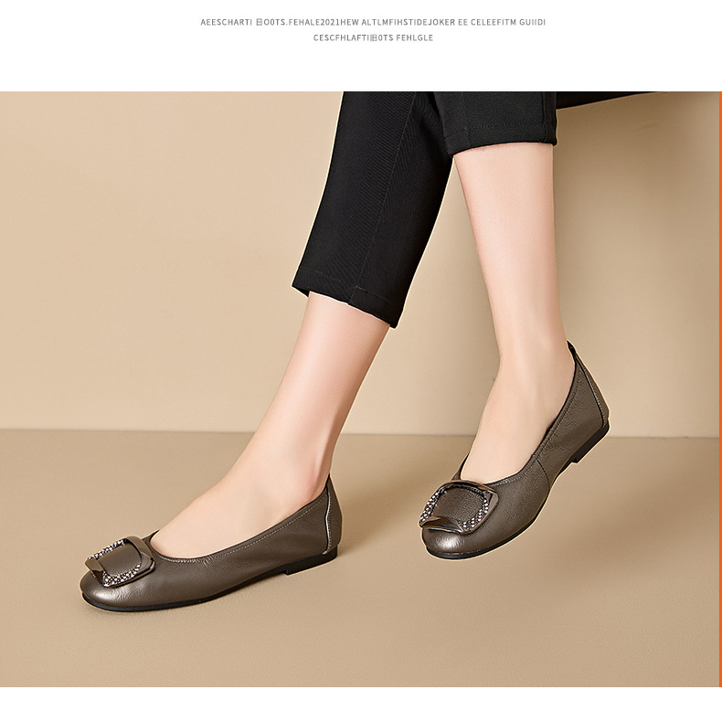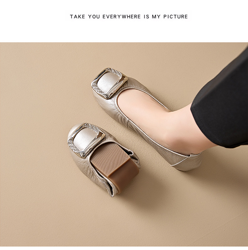 여성용 1층 소가죽 얇은 밑창 캐주얼 신발, 한국식 라인스톤 할머니 신발, 한쪽 다리 캐주얼 반 접힌 에그롤 댄스 신발스토어 가기