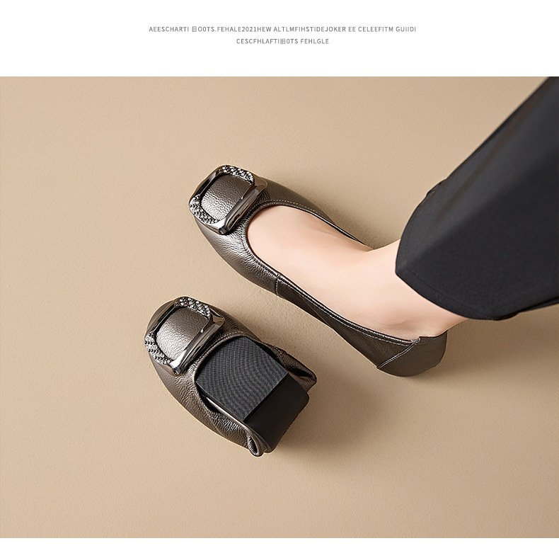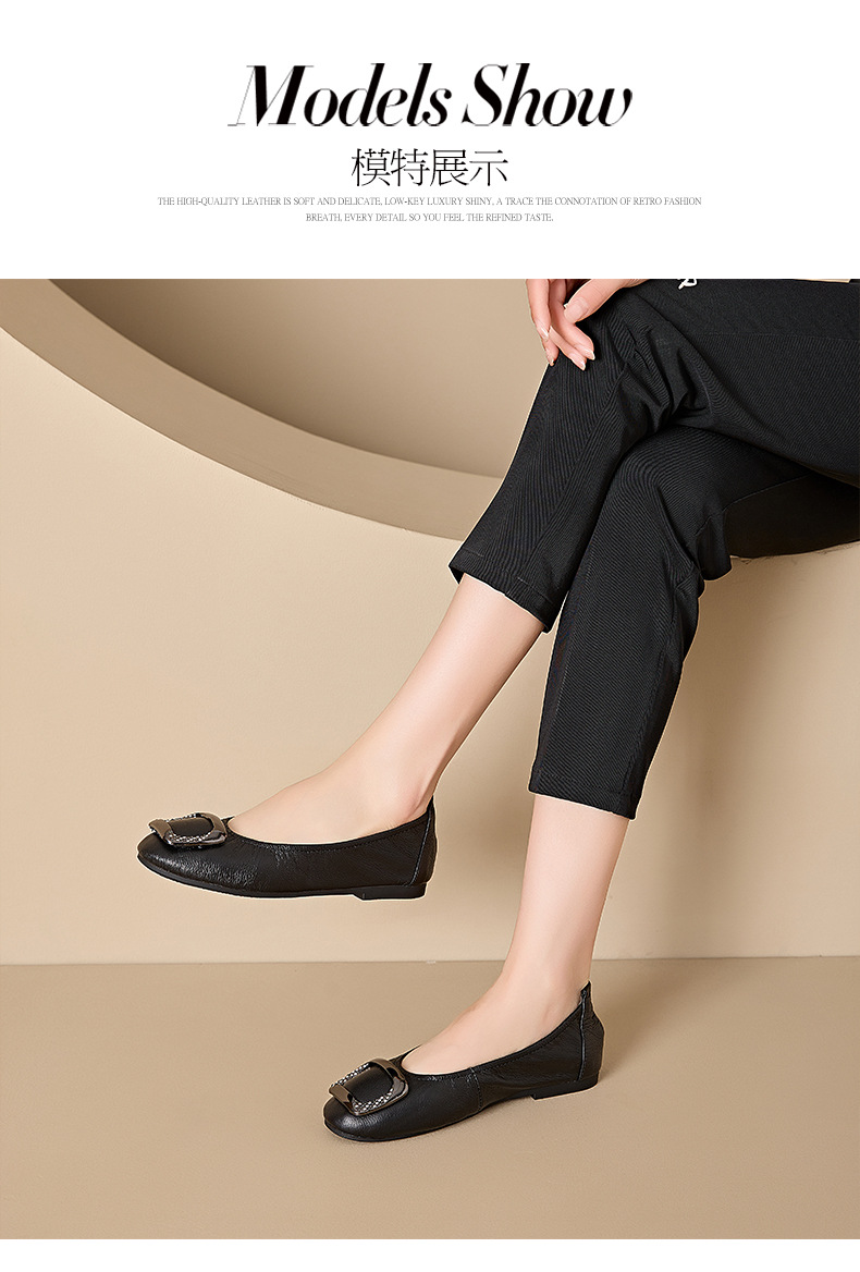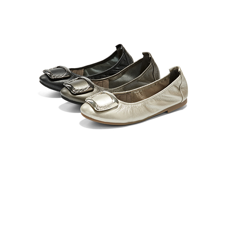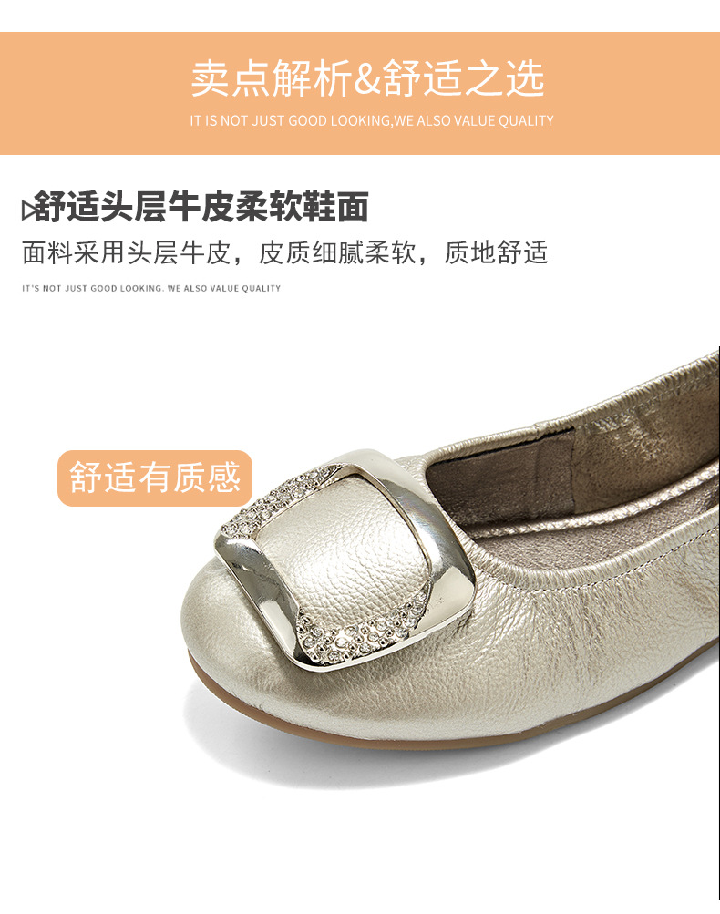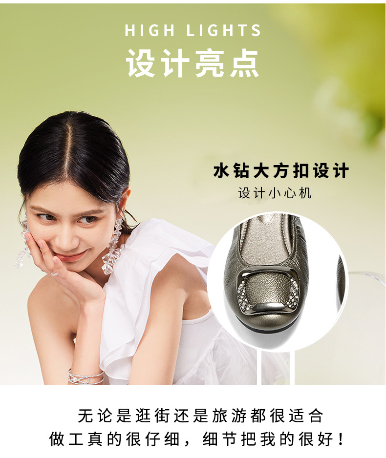 여성용 1층 소가죽 얇은 밑창 캐주얼 신발, 한국식 라인스톤 할머니 신발, 한쪽 다리 캐주얼 반 접힌 에그롤 댄스 신발스토어 가기