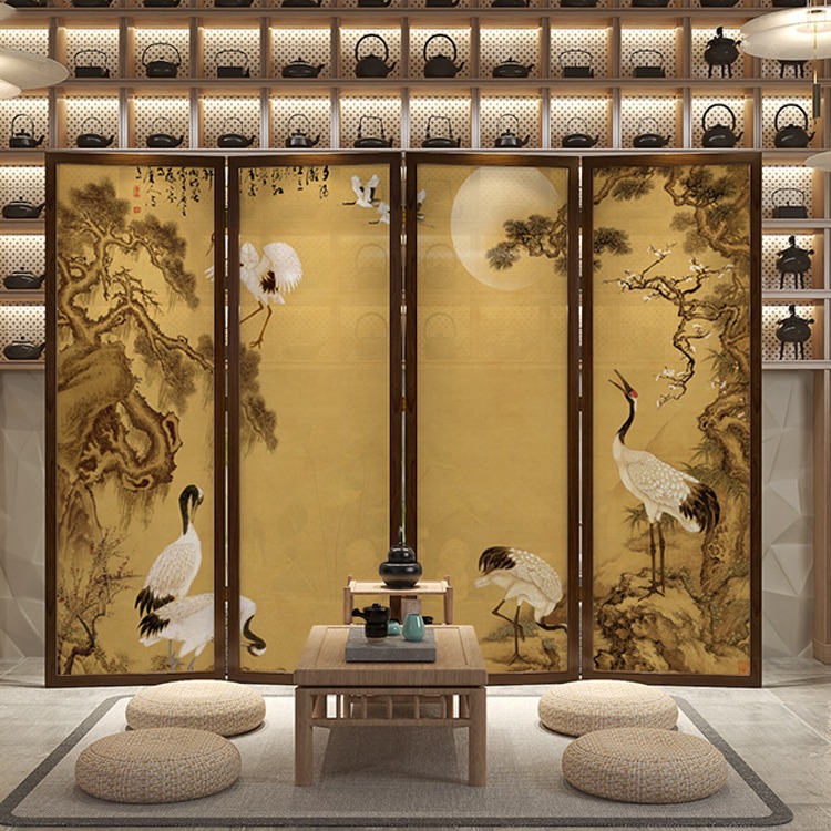 스크린 파티션 거실 입구 복도 접이식 모바일 중국 레트로 선 크레인 티룸 솔리드 우드 접는 화면
