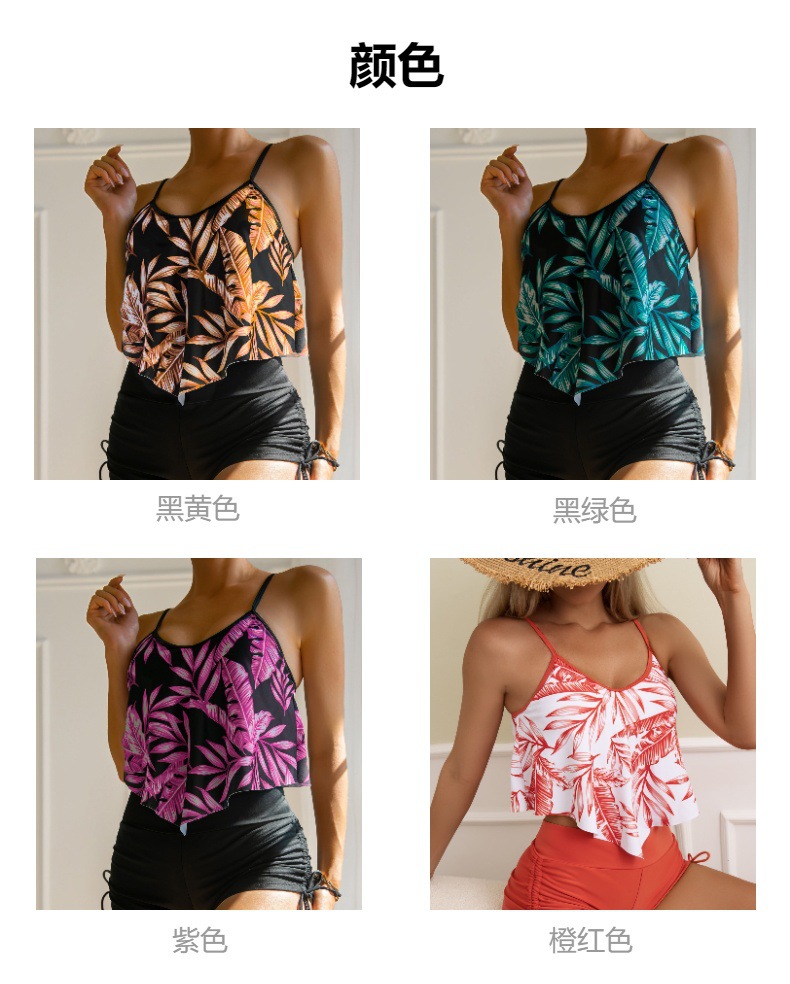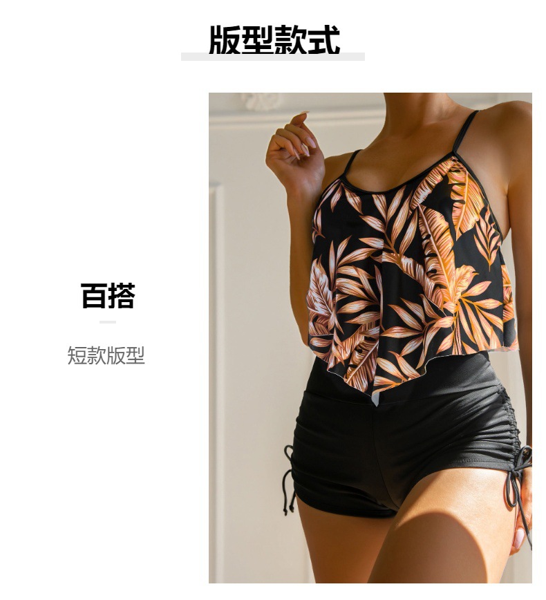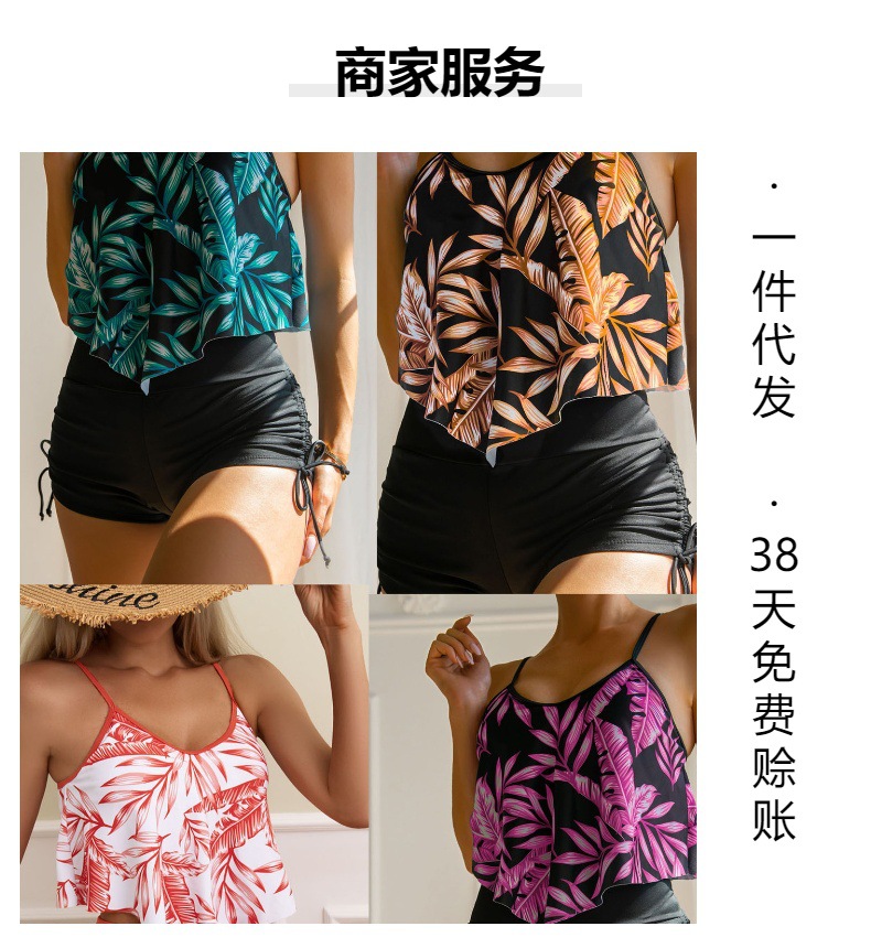 유럽과 미국의 새로운 수영복 여성용 프린트 멀티 컬러 대형 프릴 브래지어 드로스트링 복서 팬티 Amazon 크로스 보드 수영복 재고 있음