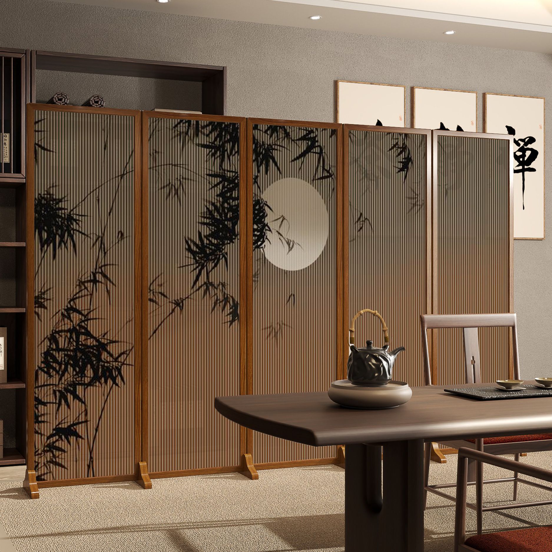 중국 선 스타일 대나무 솔리드 우드 양면 이동식 접이식 스크린 파티션 거실 입구 복도 설치-무료 대피소스토어 가기