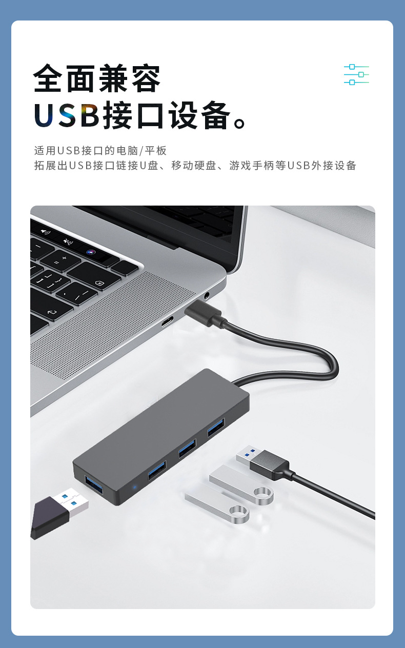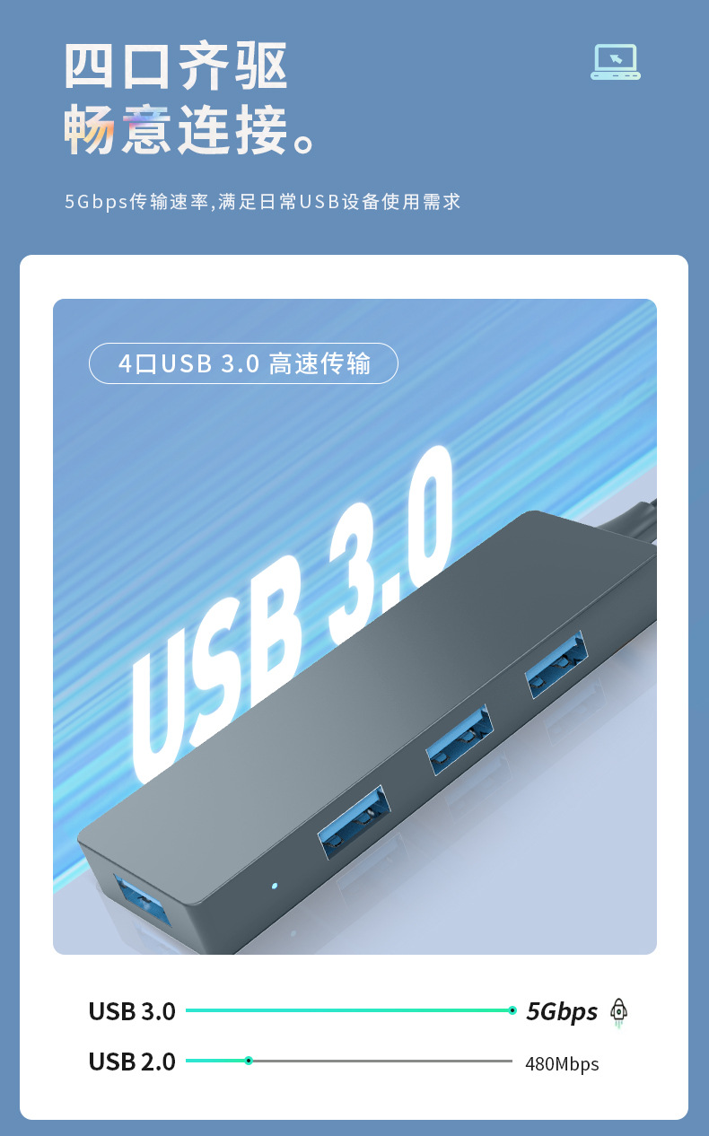 국경 간 핫 셀러 USB 허브 4 대 1 USB3.0 허브 노트북 태블릿 다기능 확장 도크스토어 가기
