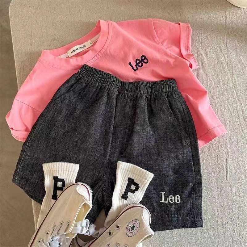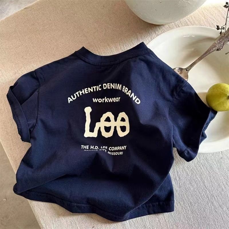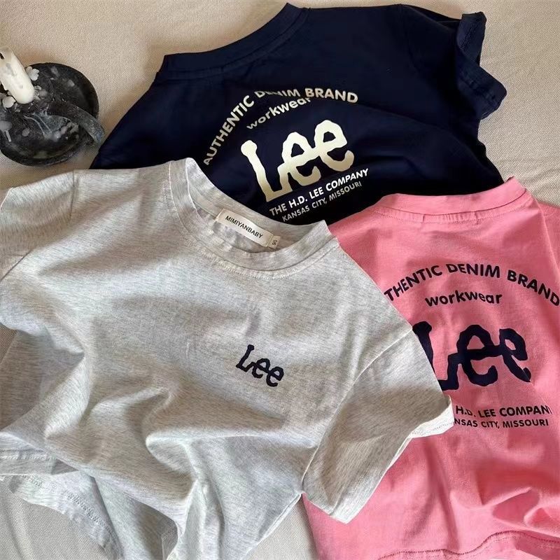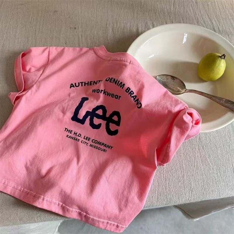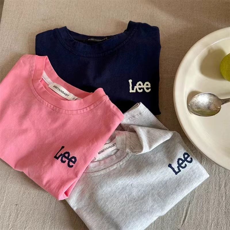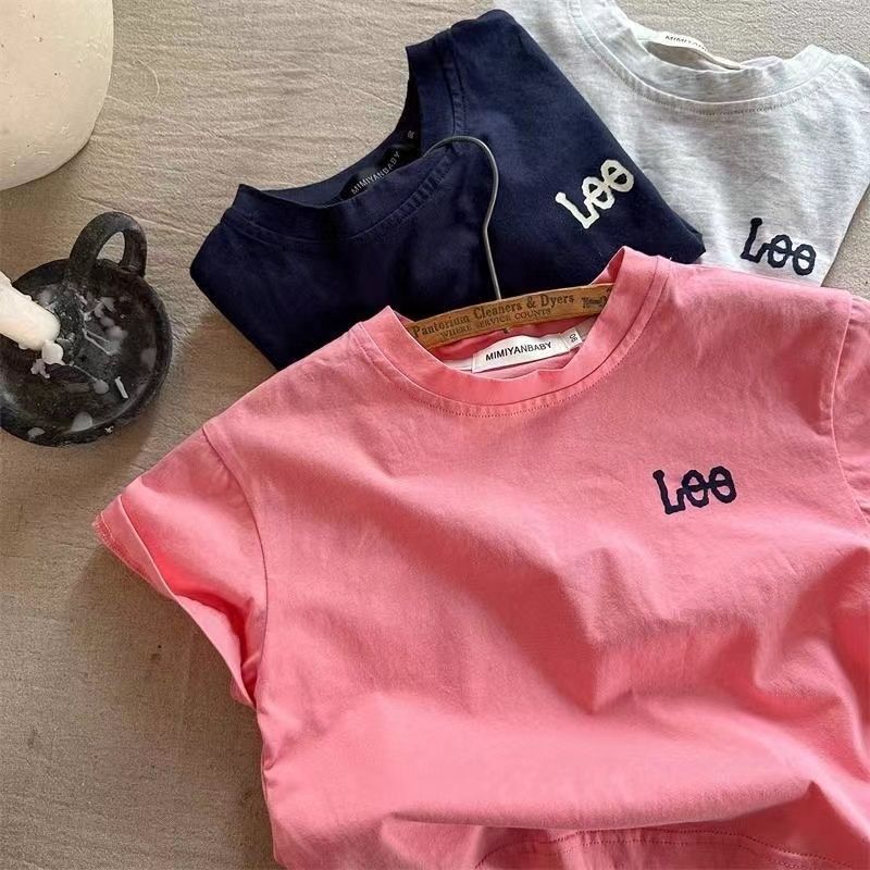 아동용 반팔 티셔츠 2025 여름 신작 순면 소년 소녀 일본 유행 브랜드 레터 t 베이비 솔리드 컬러 바닥 셔츠스토어 가기