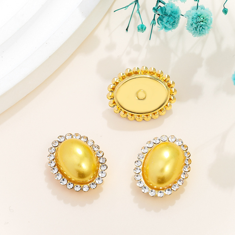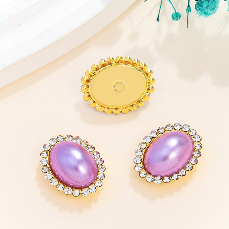 타원형 컬러 진주 플랫 바닥 코뿔석 가장자리 골드 바닥 금속 손으로 꿰매는 다이아몬드 DIY 쥬얼리 액세서리스토어 가기