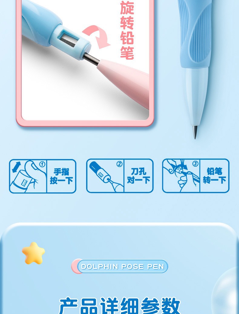 Tianzhuo, 고정 자세 자동 연필 활동 연필 돌고래 오리엔테이션 2.0 학생 특별 3 손가락 포지셔닝 연습