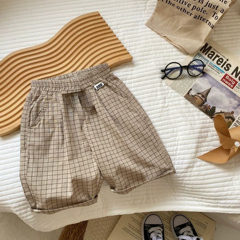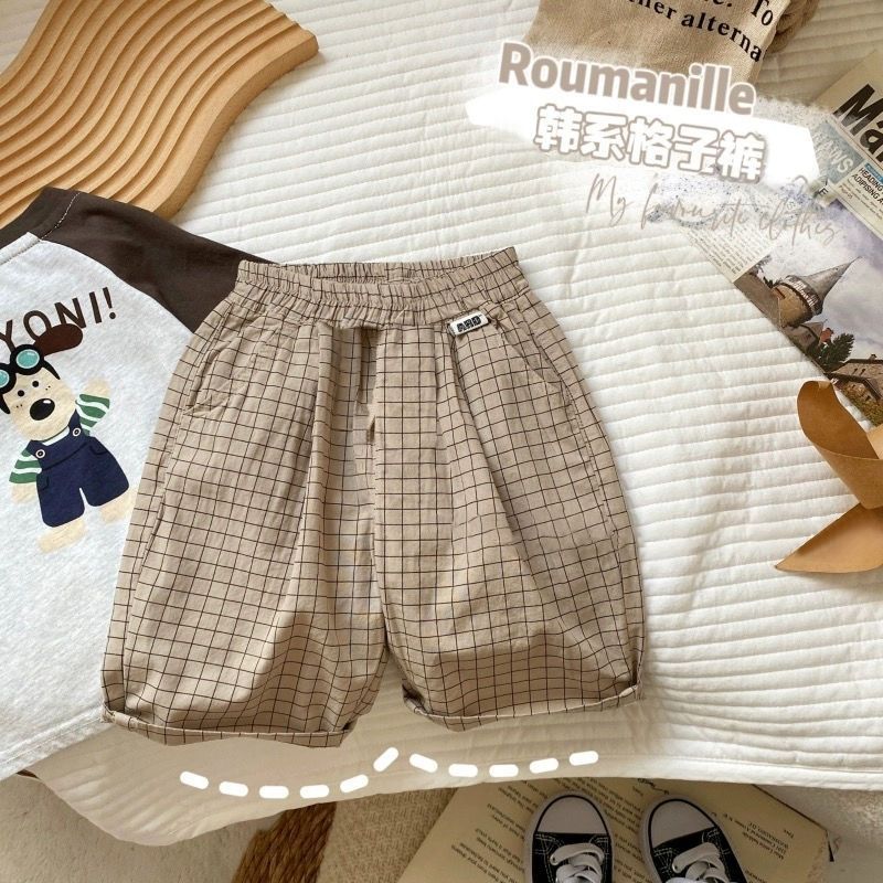 소년의 반팔 여름 세트 새로운 스타일 베이비 체크 무늬 티셔츠 반바지 투피스 세트 0061A002