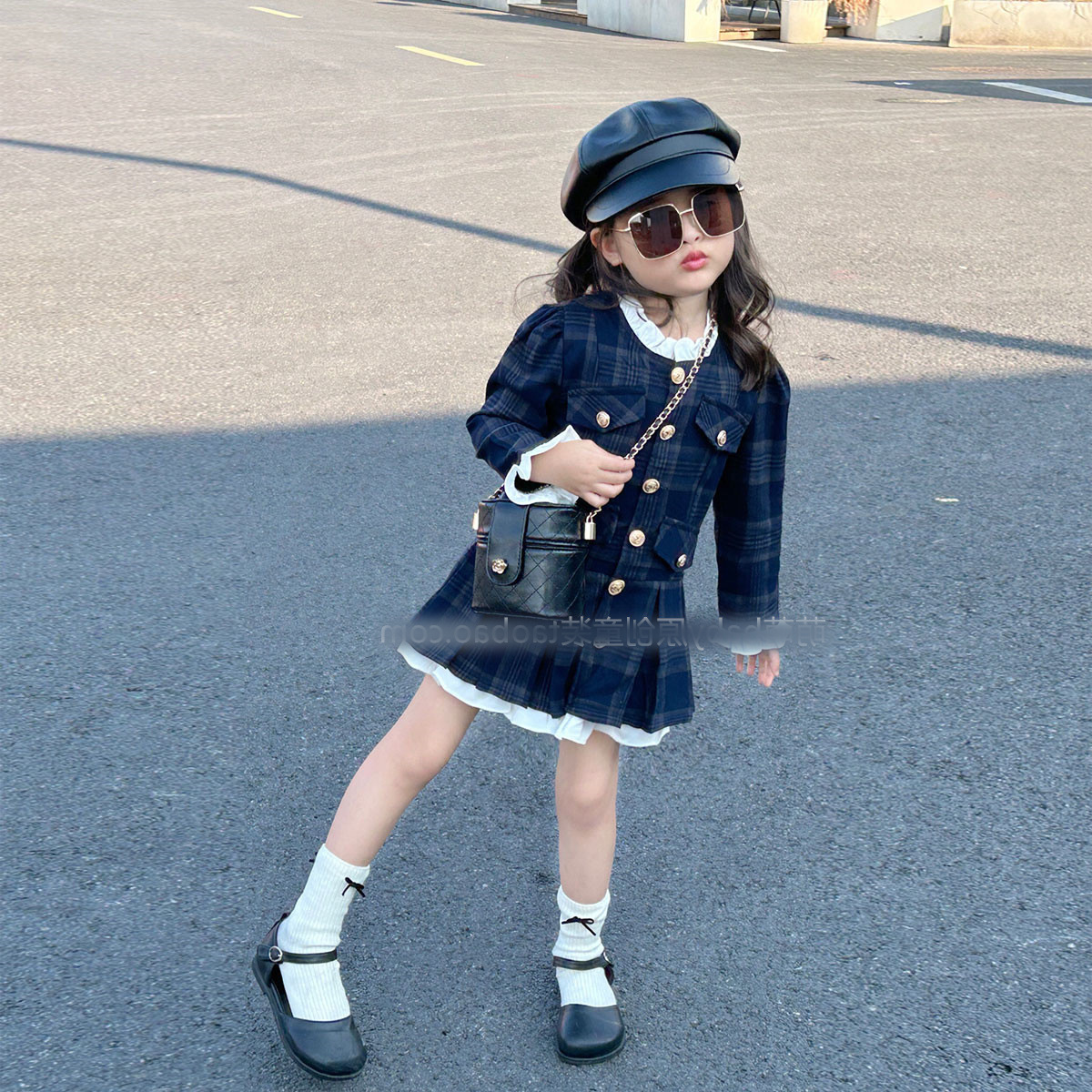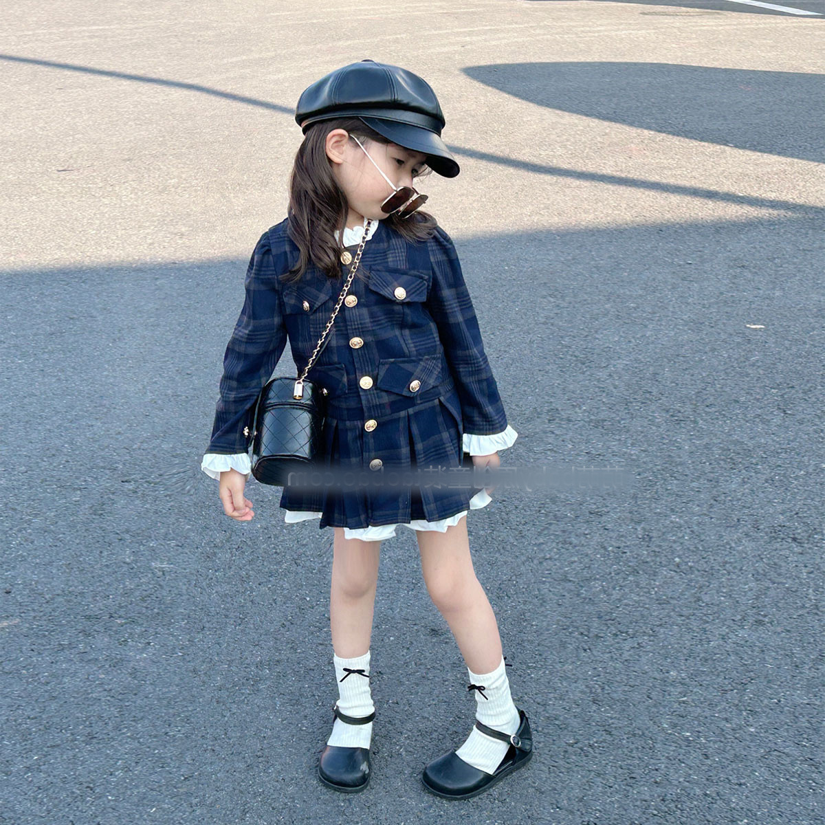 소녀 원피스 봄 새로운 작은 스타일 격자 무늬 원피스 긴 소매 주름 치마 어린이 머리카락 세대스토어 가기