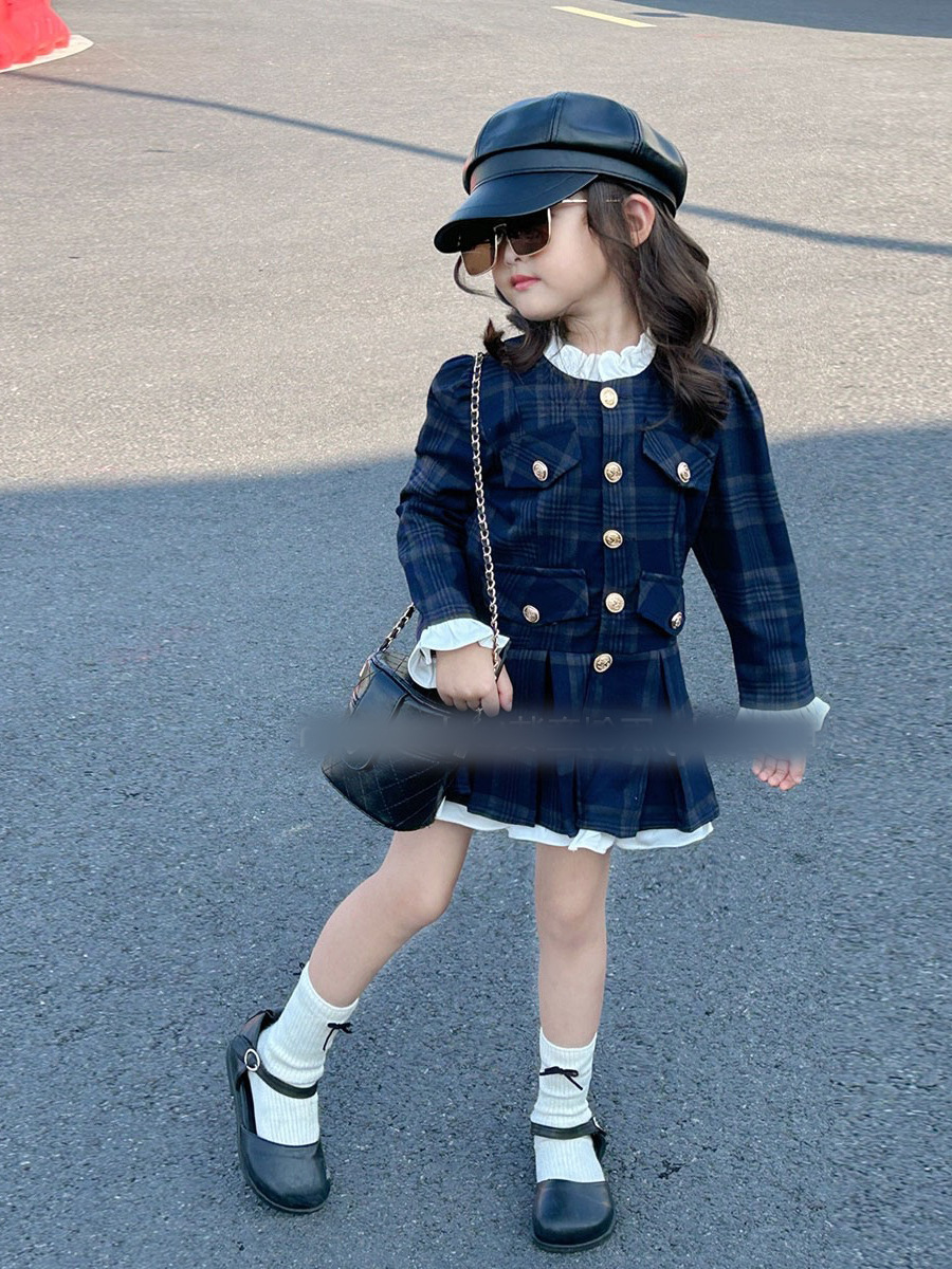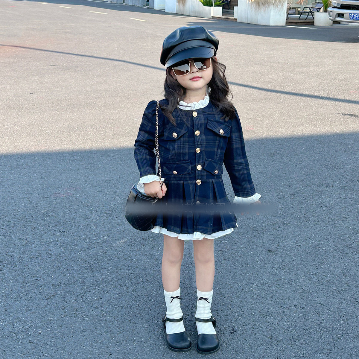 소녀 원피스 봄 새로운 작은 스타일 격자 무늬 원피스 긴 소매 주름 치마 어린이 머리카락 세대