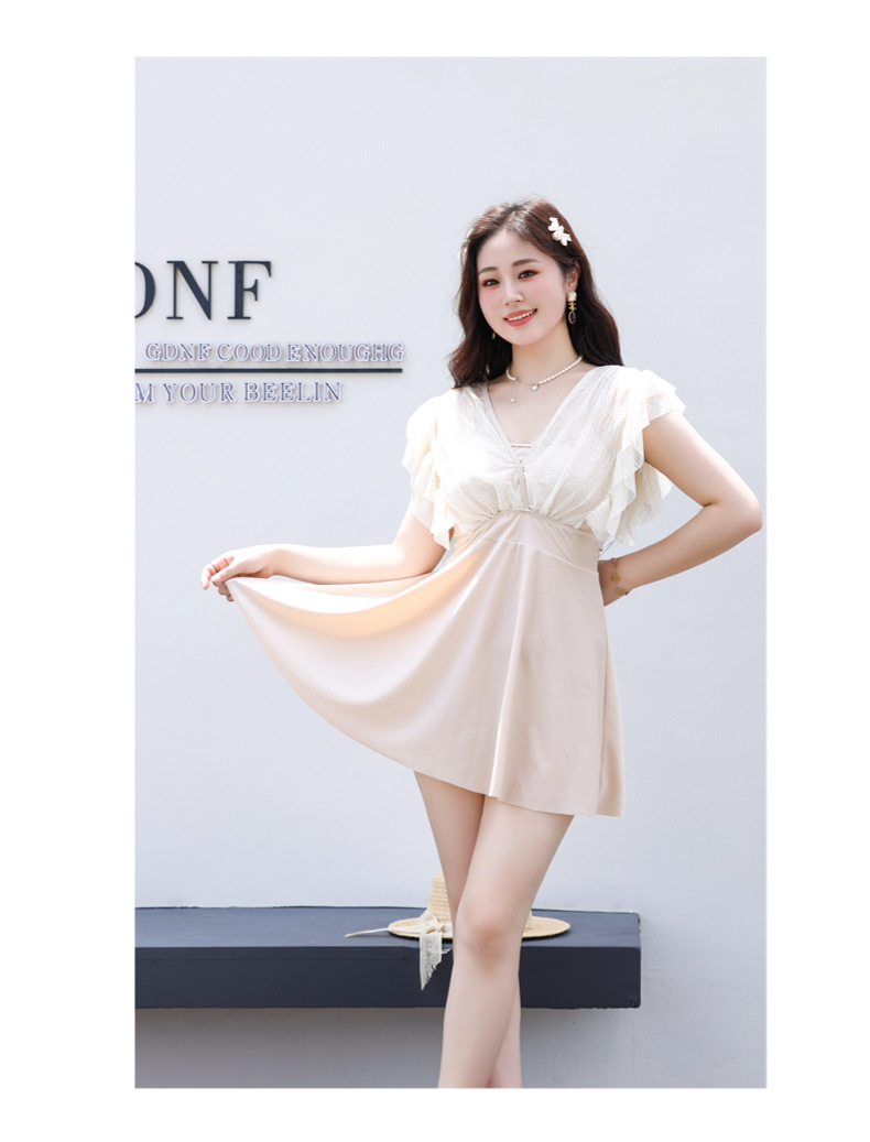2024 새로운 수영복 플러스 지방 증가 보수적 인 슬리밍 배꼽 커버 뚱뚱한 소녀 온천 여성용 온천 수영복의 대형 한국어 버전