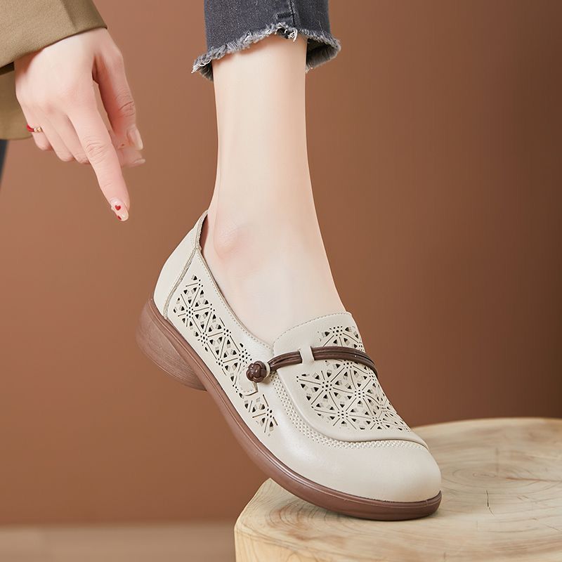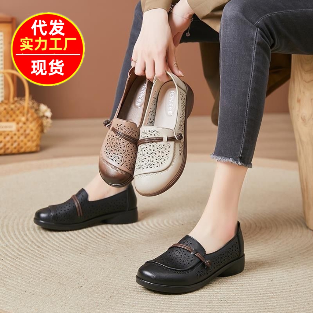 2024 새로운 중년 및 노년의 연약한 어머니 신발 여름 통기성 미끄럼 방지 구멍 신발 샌들 노년기 신발 올매치