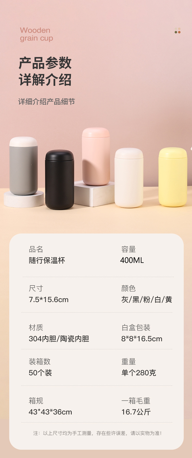 캡슐 컵 세라믹 라이너 커피 컵 높은 색상 가치 스테인레스 스틸 자동차 물 컵 비즈니스 티 컵 고급 보온병 컵
