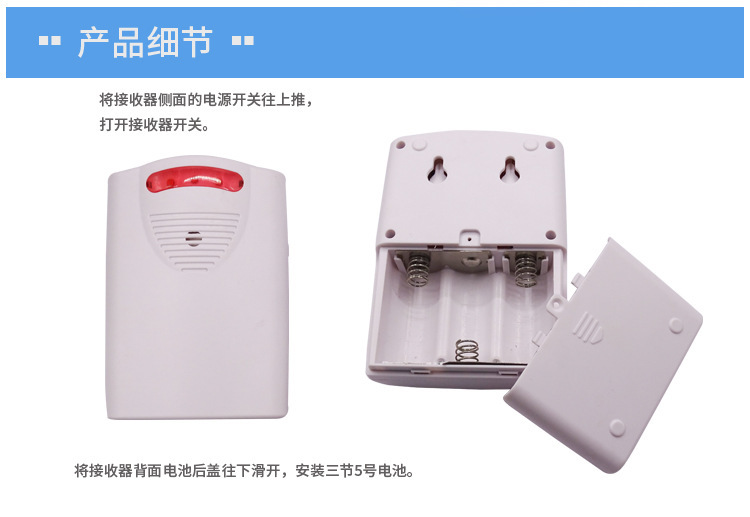 感器会发送信号给接收器,最远可到100米的距离。对于接收器,你可以选择用高音量或者低