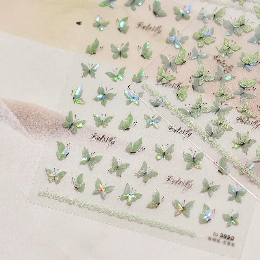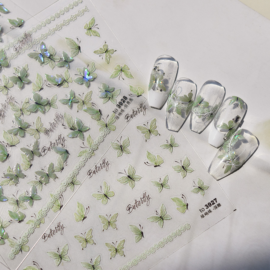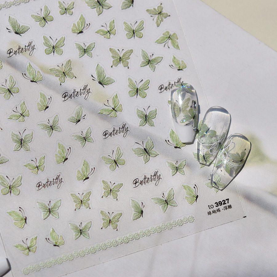 쉘 라이트 그린 나비 네일 아트 스티커 tomoni 작은 신선한 고급 말차 나비 스마트 나비 네일 아트 스티커
