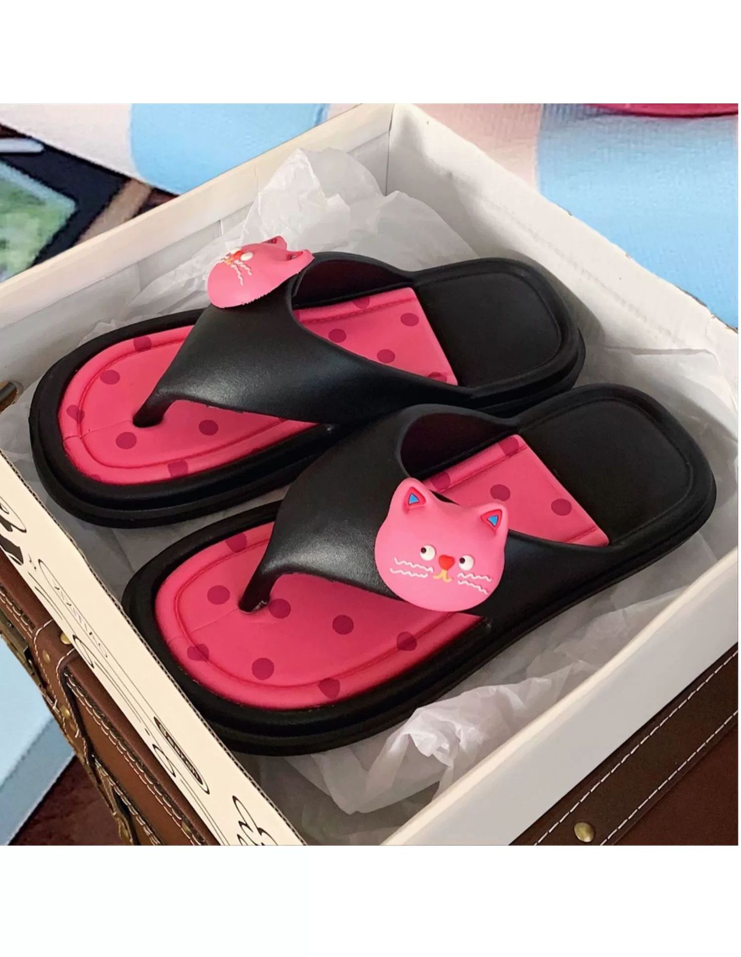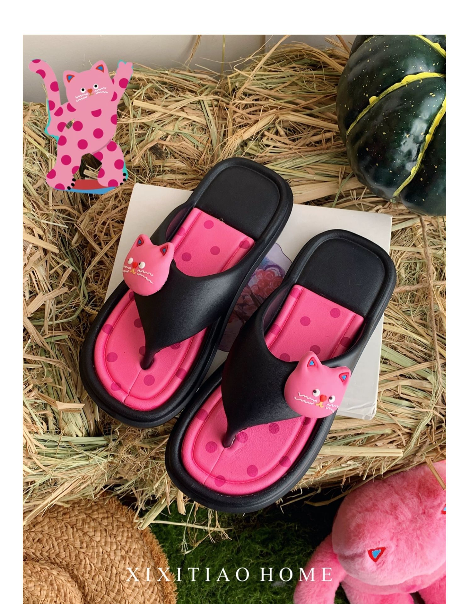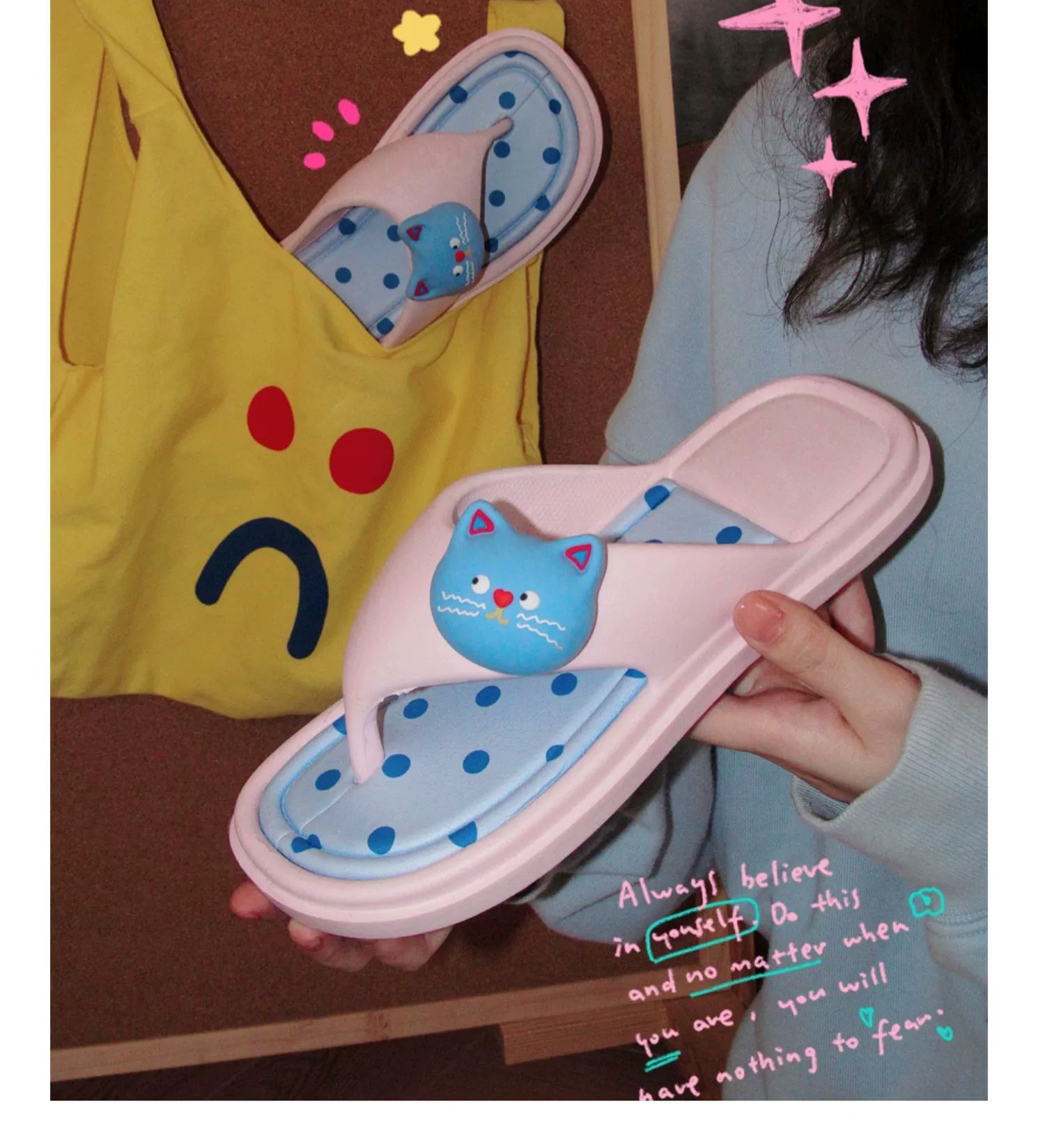 귀여운 폴카 도트 고양이 야외 착용 EVA 부드러운 바닥 해변 해변 2025 여름 새 스타일 소녀 EVA 플립 플롭스토어 가기