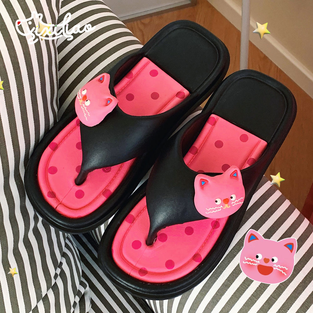 귀여운 폴카 도트 고양이 야외 착용 EVA 부드러운 바닥 해변 해변 2025 여름 새 스타일 소녀 EVA 플립 플롭