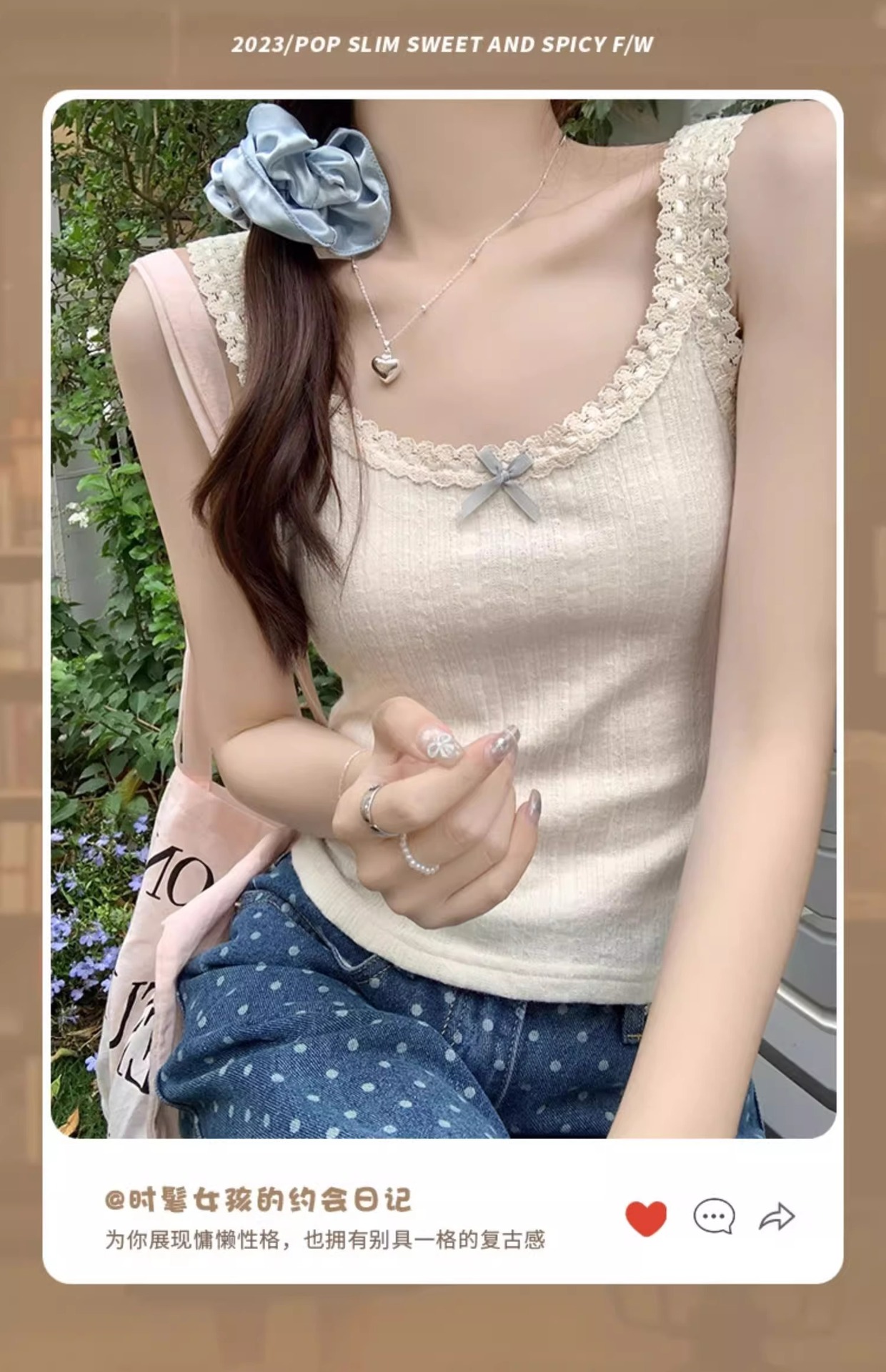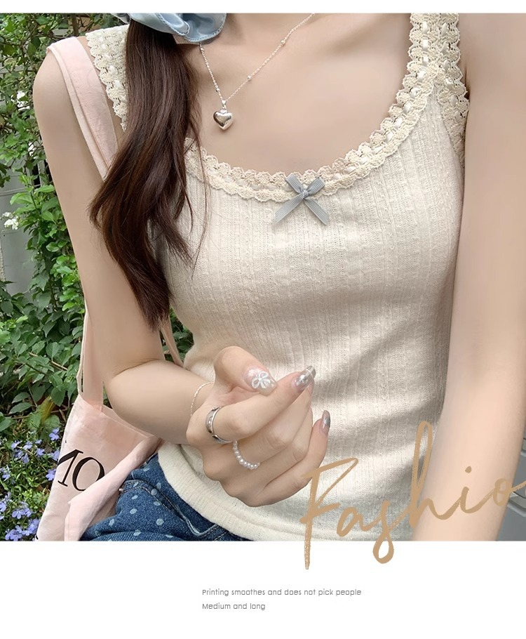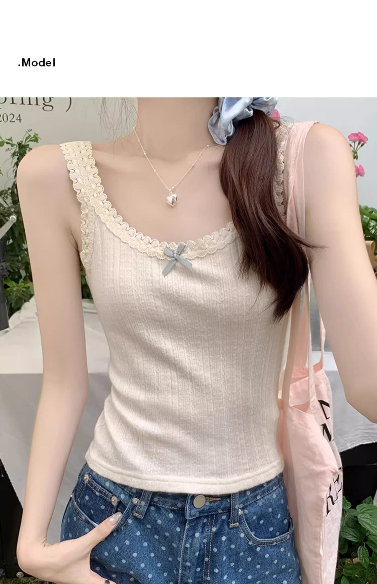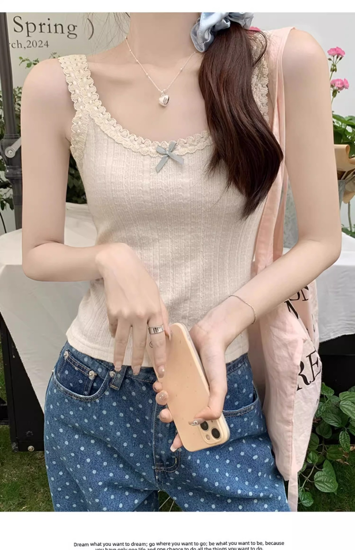 순수한 섹시함을 담은 레이스 리본 아이스 실크 얇은 스타일 2026 여름 신상 민소매 탑 달콤하고 슬림한 핏
