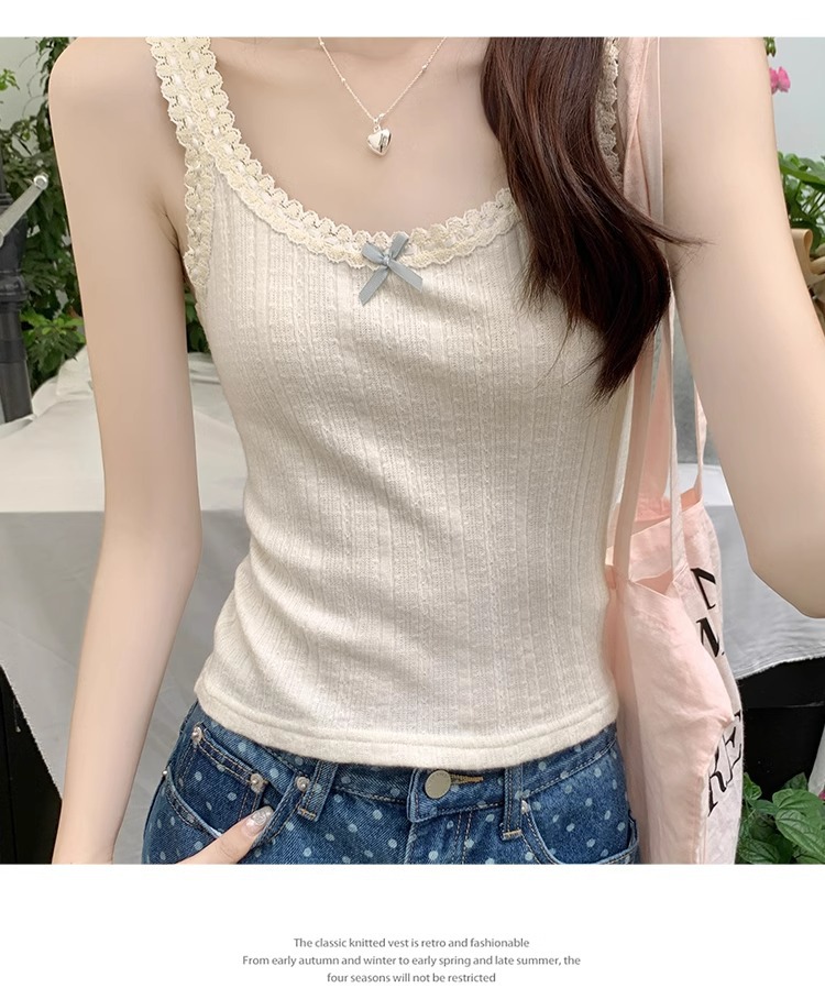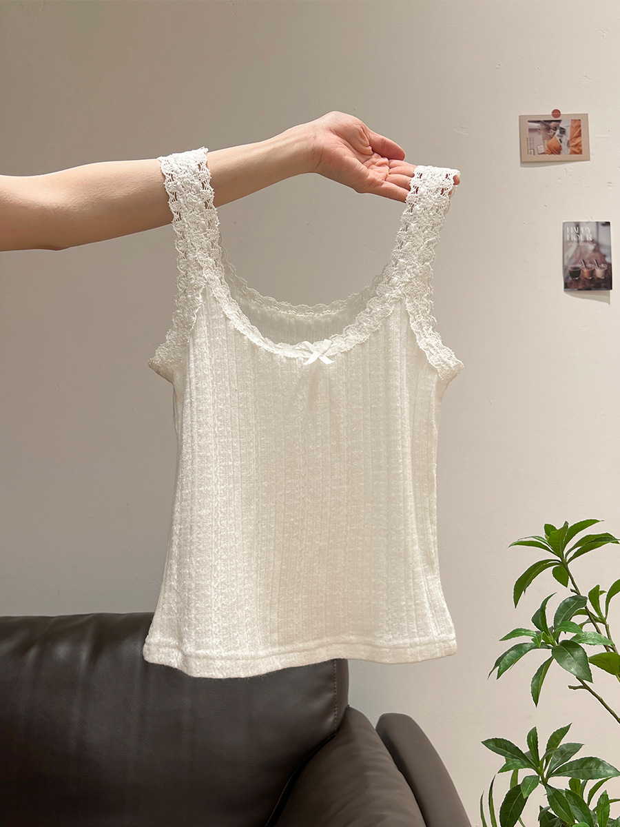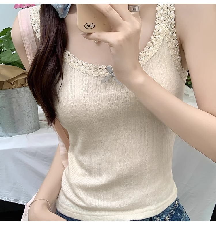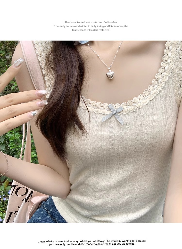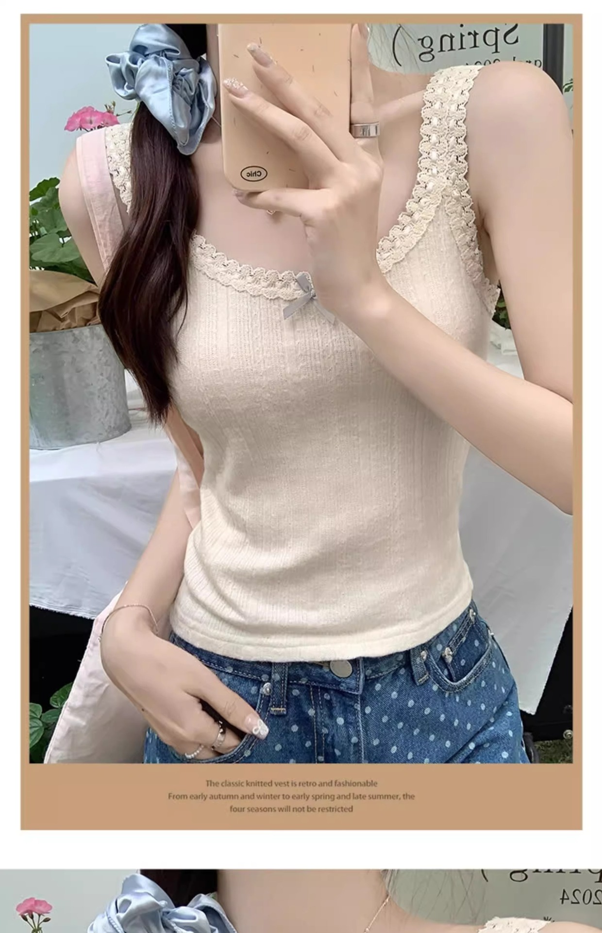 순수한 섹시함을 담은 레이스 리본 아이스 실크 얇은 스타일 2026 여름 신상 민소매 탑 달콤하고 슬림한 핏