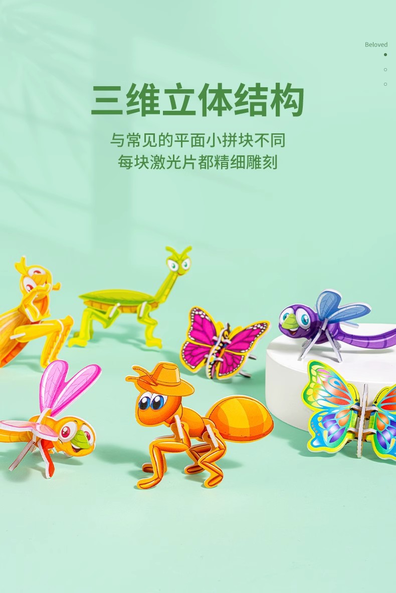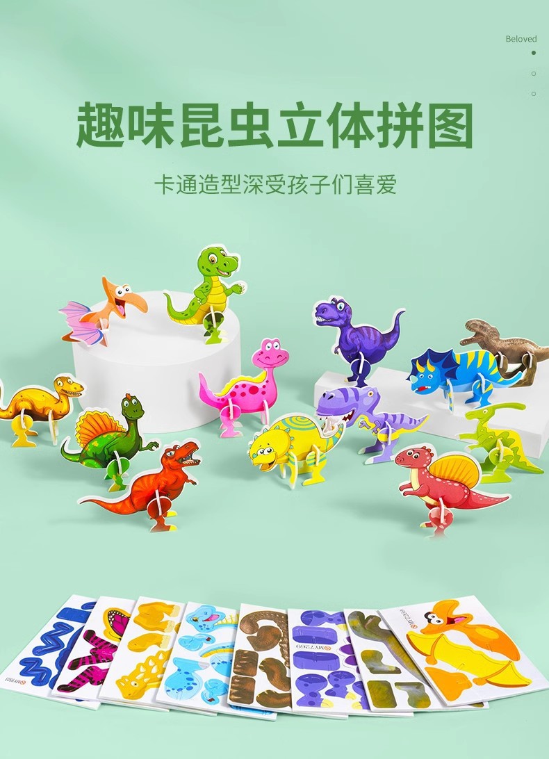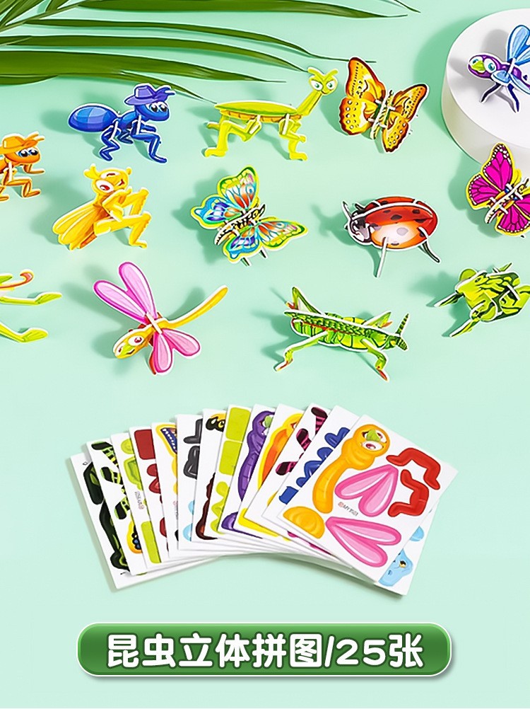 대형 3D 재미있는 곤충 스테레오 퍼즐 공룡 어린이 창조적 인 DIY 조기 교육 수제 퍼즐 조립 카드 장난감스토어 가기