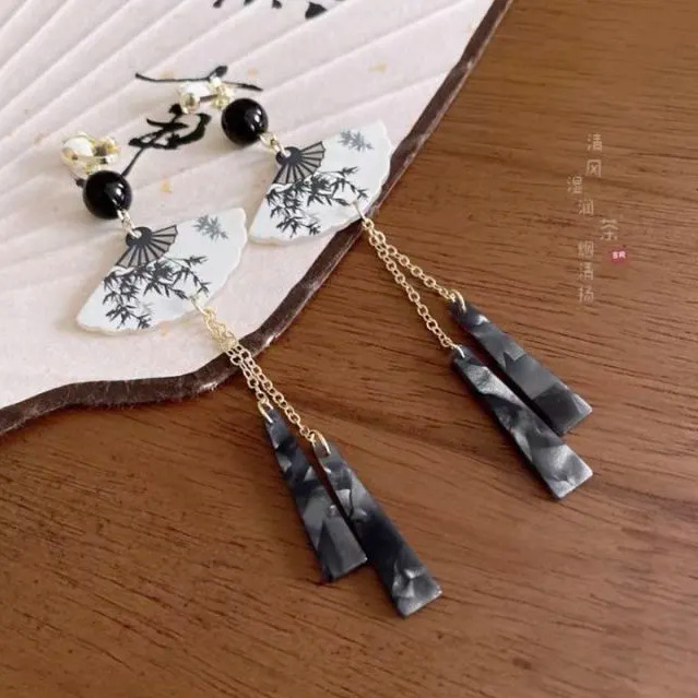 • 122#대나무 그림자 팬 술 삼각형 귀 클립