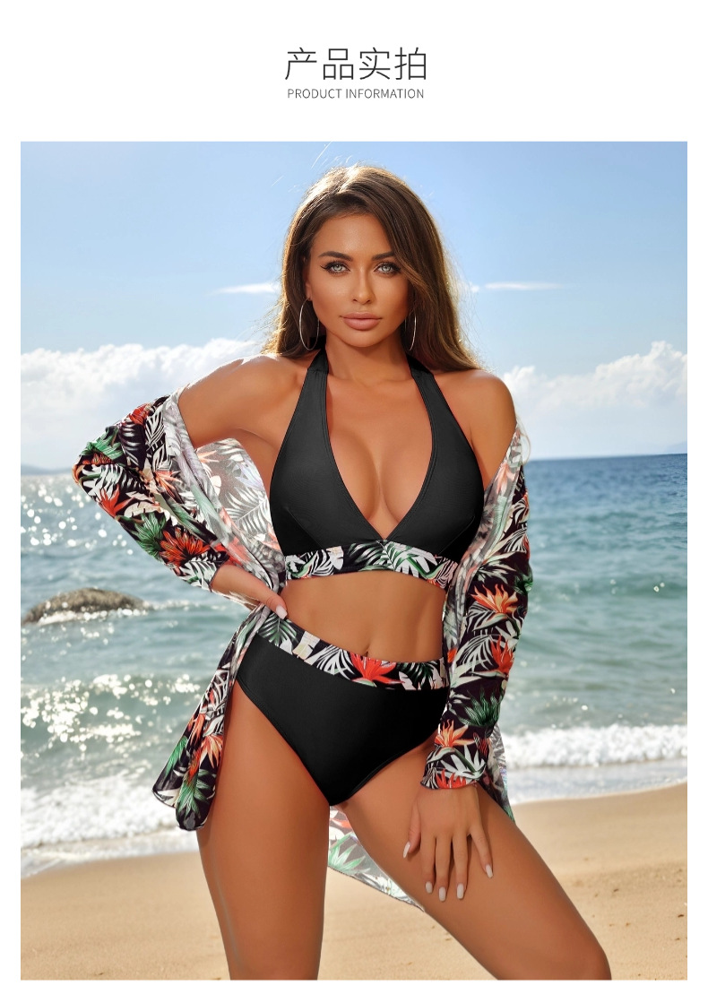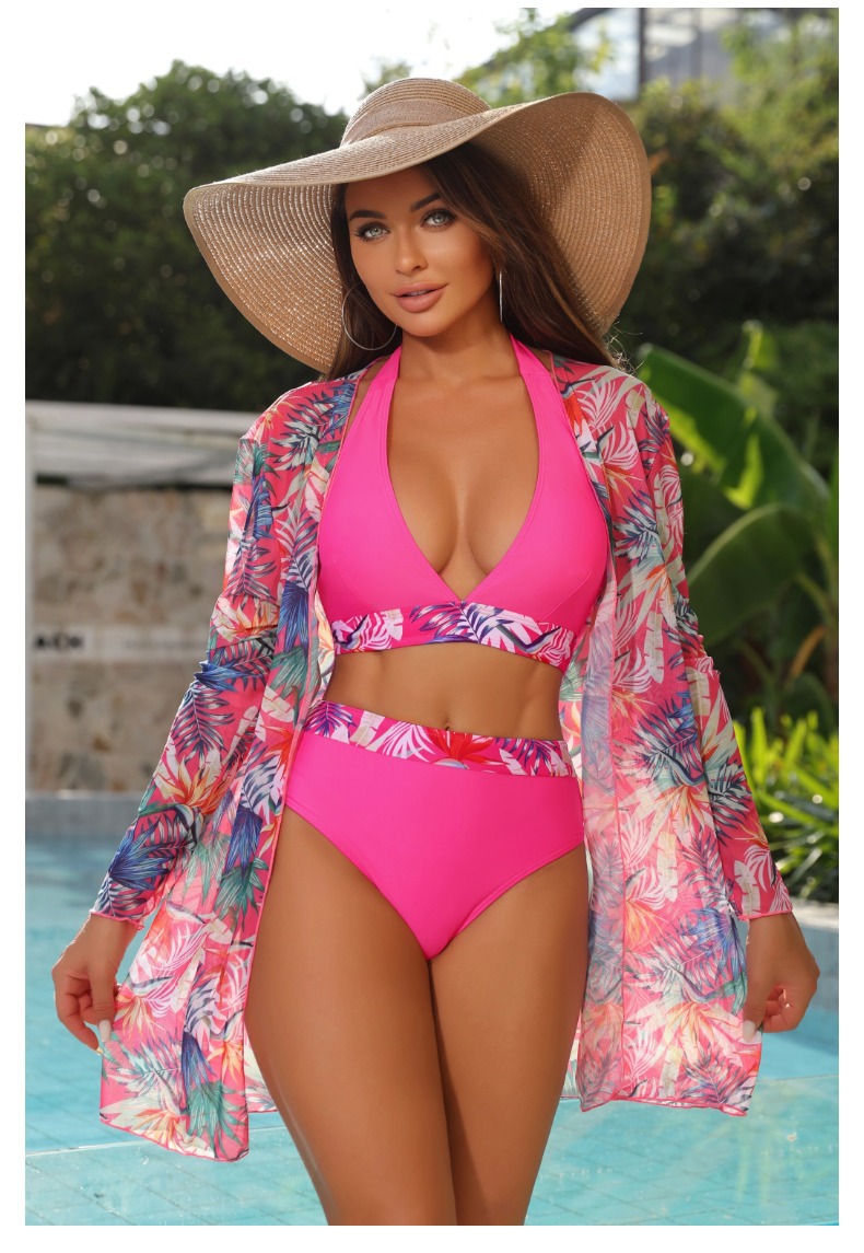 유럽과 미국의 대외 무역 국경 새로운 비키니 메쉬 분할 3 피스 수영복 여성 여름 태양 보호 커버 업 수영복 여성