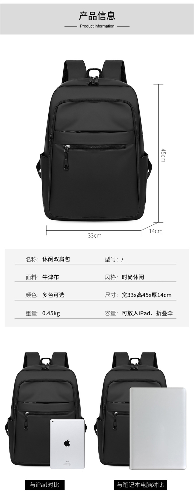 새로운 2024 옥스포드 천 배낭 남성 대용량 Schoolbag 유행 비즈니스 컴퓨터 가방 간단한 학생 배낭