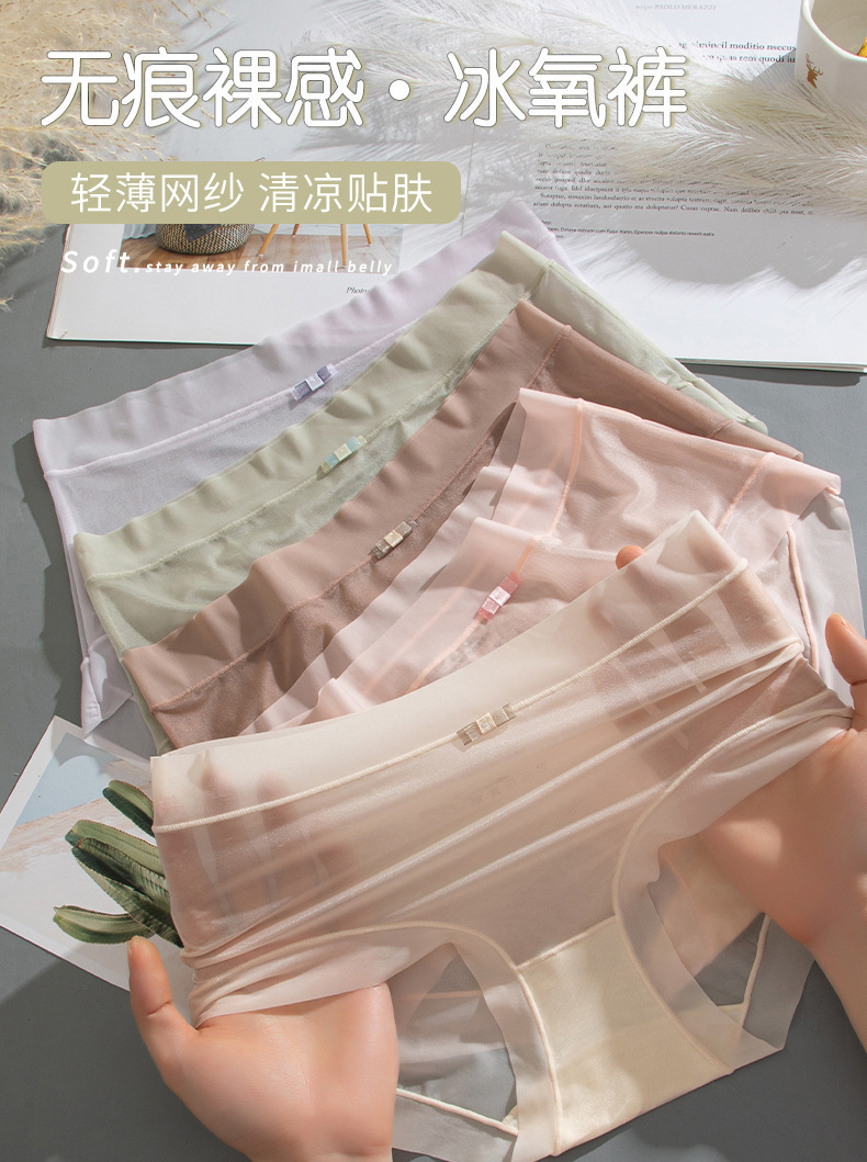 여름 아이스 실크 속옷 여성의 통기성 비 마킹 미드 하이 허리 피부 친화적 인 마스크 바지 여성용 알몸 퓨어 코튼 크로치 여름 얇은스토어 가기