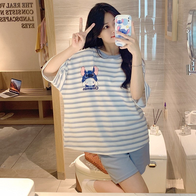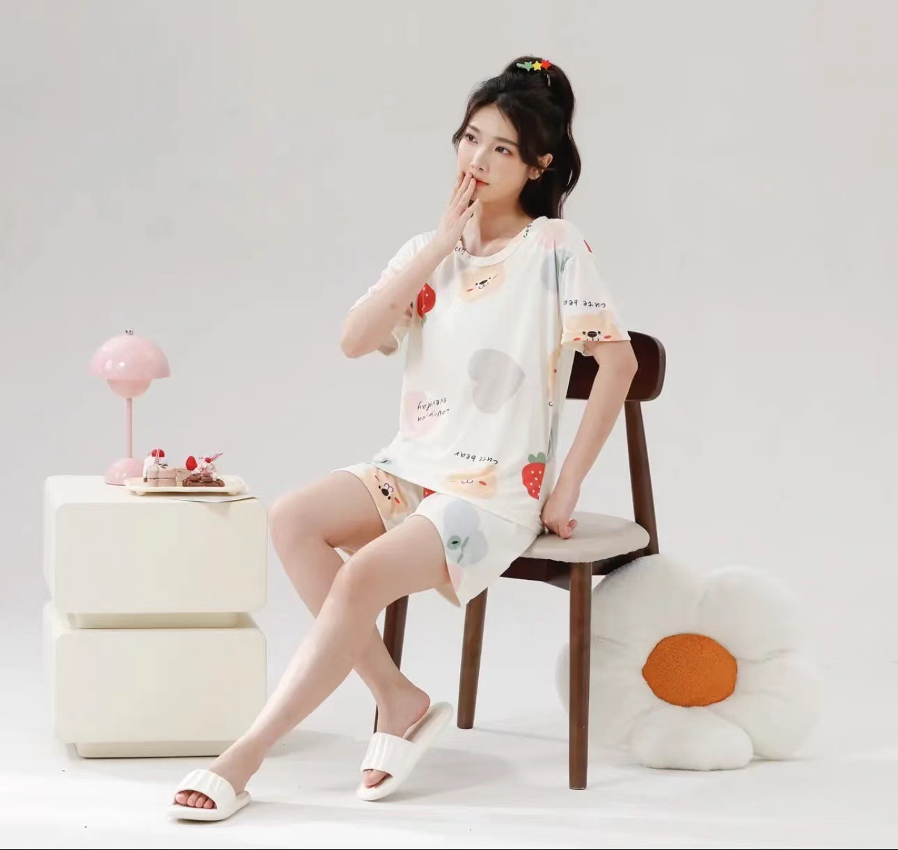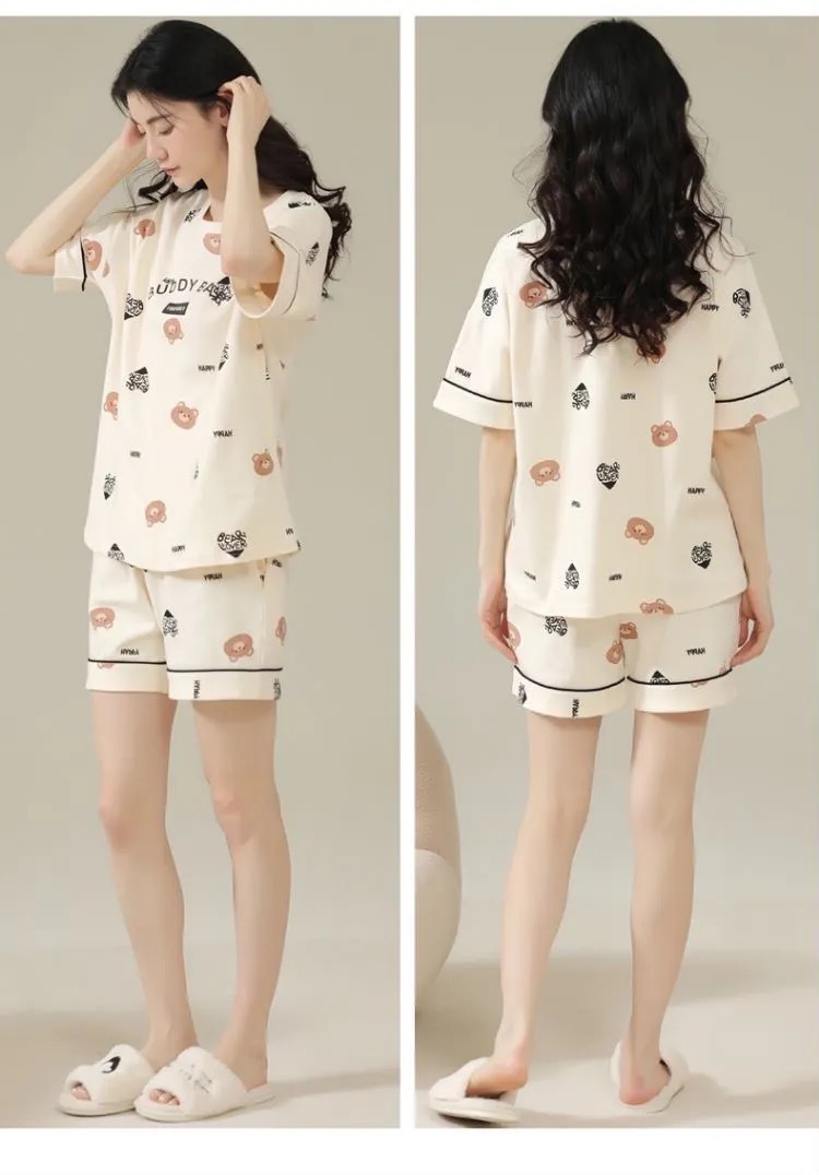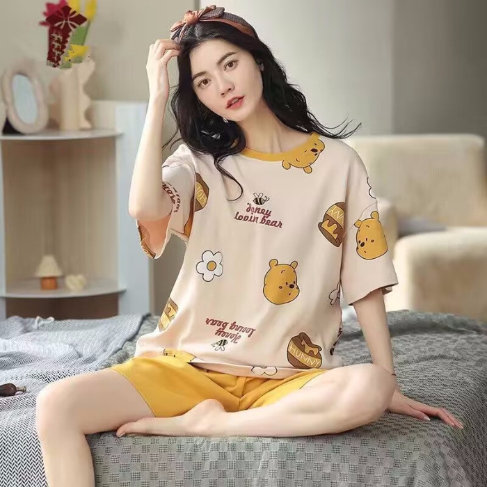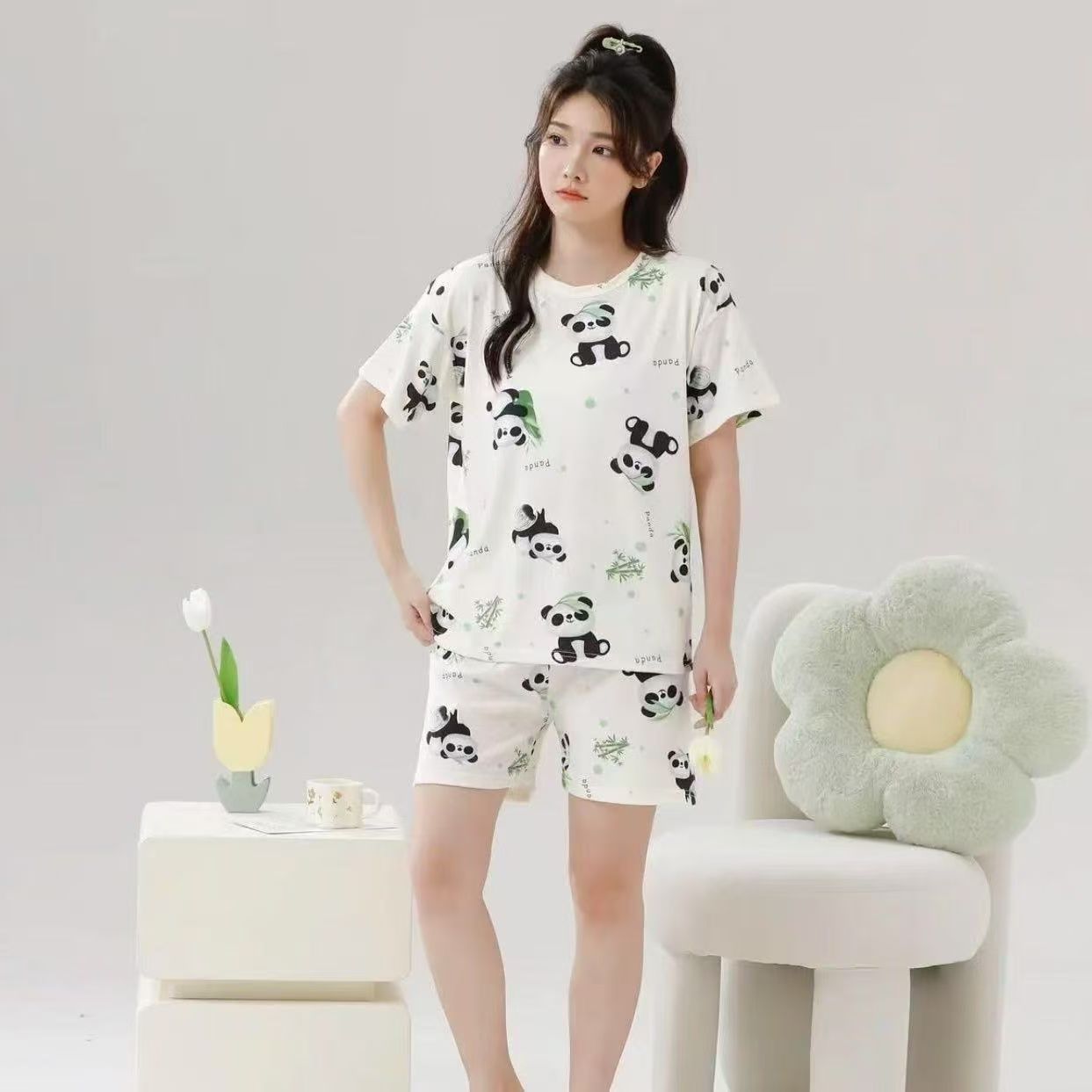 여성용 잠옷 여름 2025 새로운 반팔 반바지 인기있는 달콤한 인터넷 연예인 귀여운 만화 여름 정장 홈웨어스토어 가기