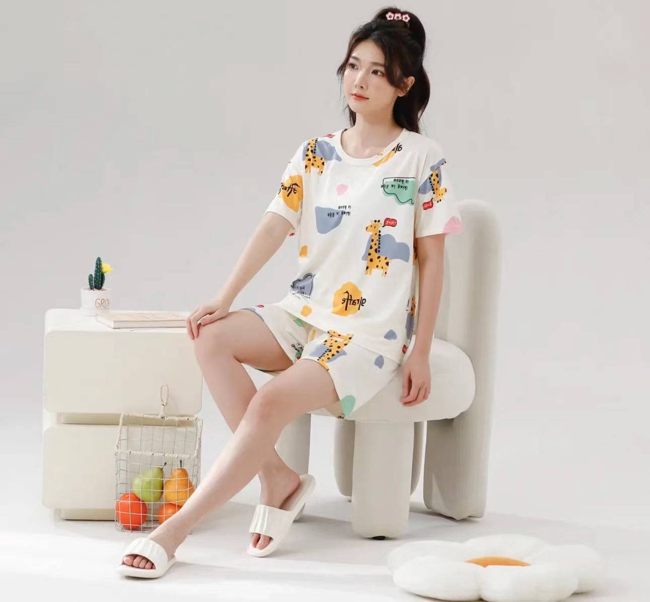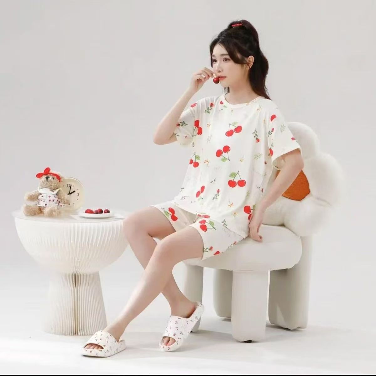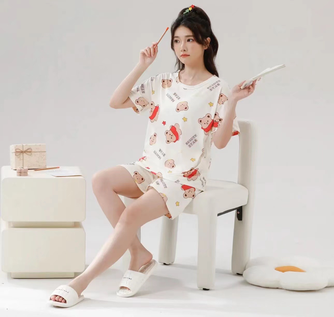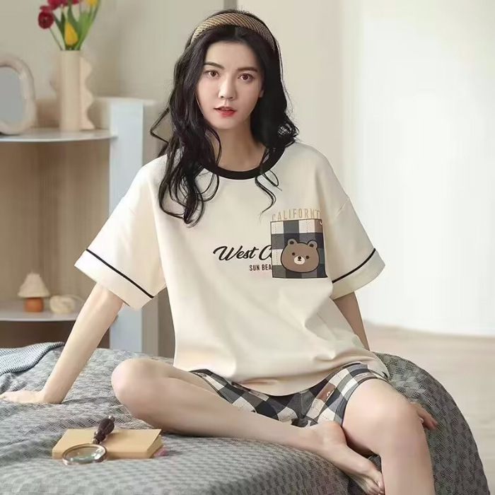 여성용 잠옷 여름 2025 새로운 반팔 반바지 인기있는 달콤한 인터넷 연예인 귀여운 만화 여름 정장 홈웨어스토어 가기