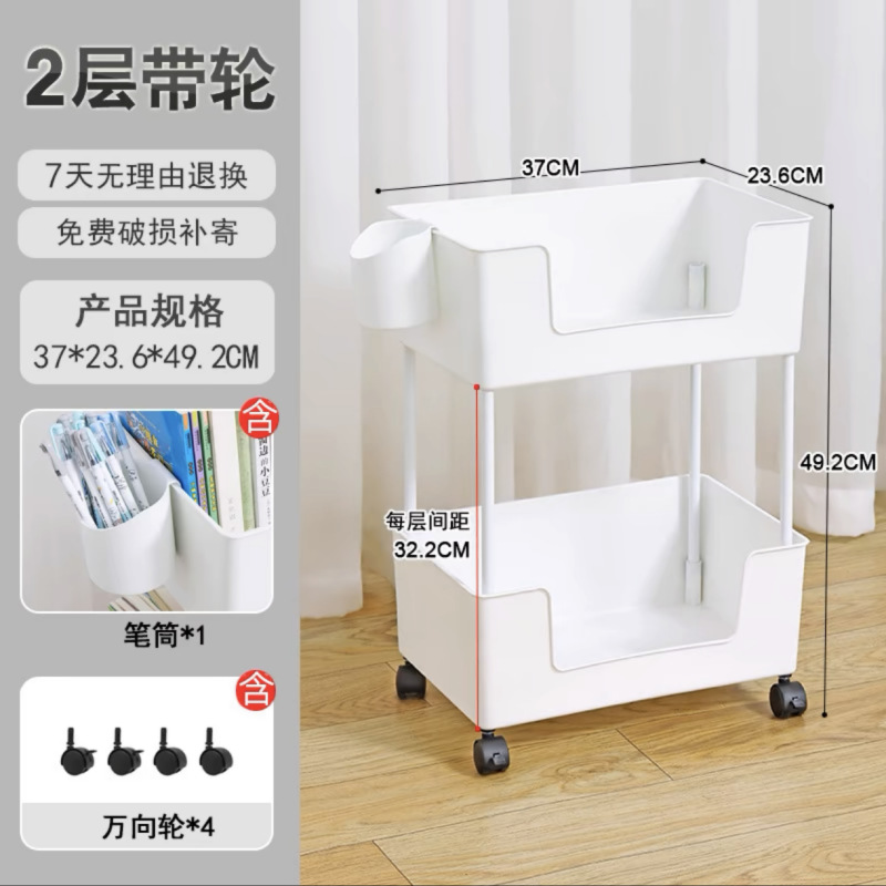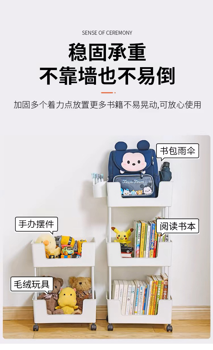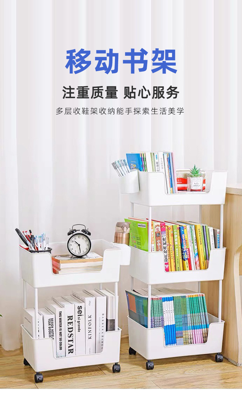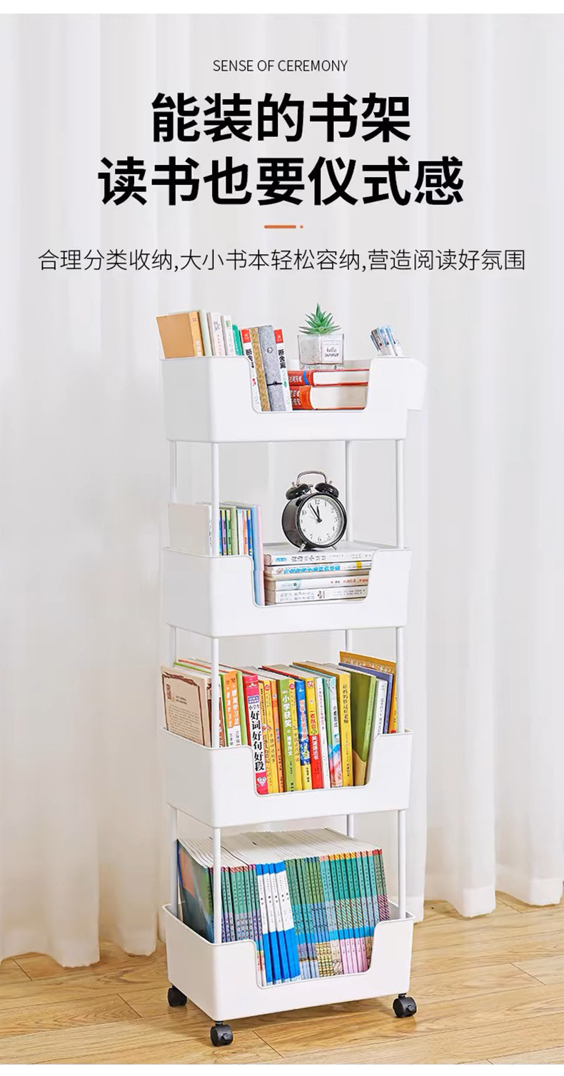 课本收纳架书架带轮桌下置物架儿童绘本文具玩具多层家用储物架