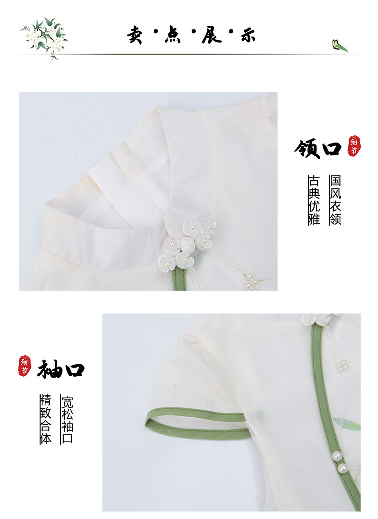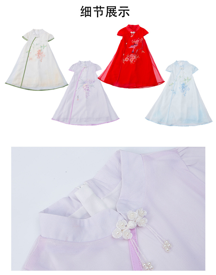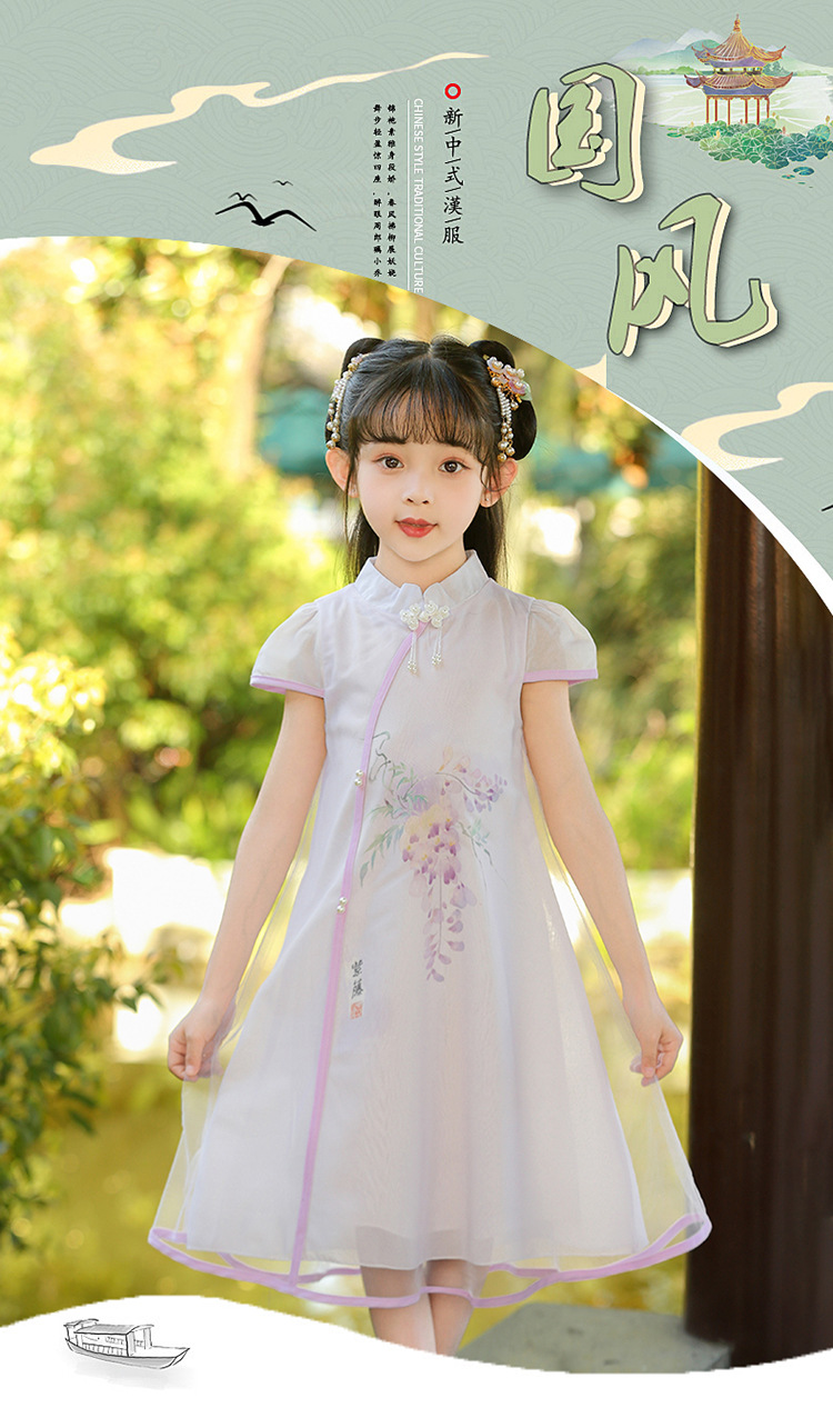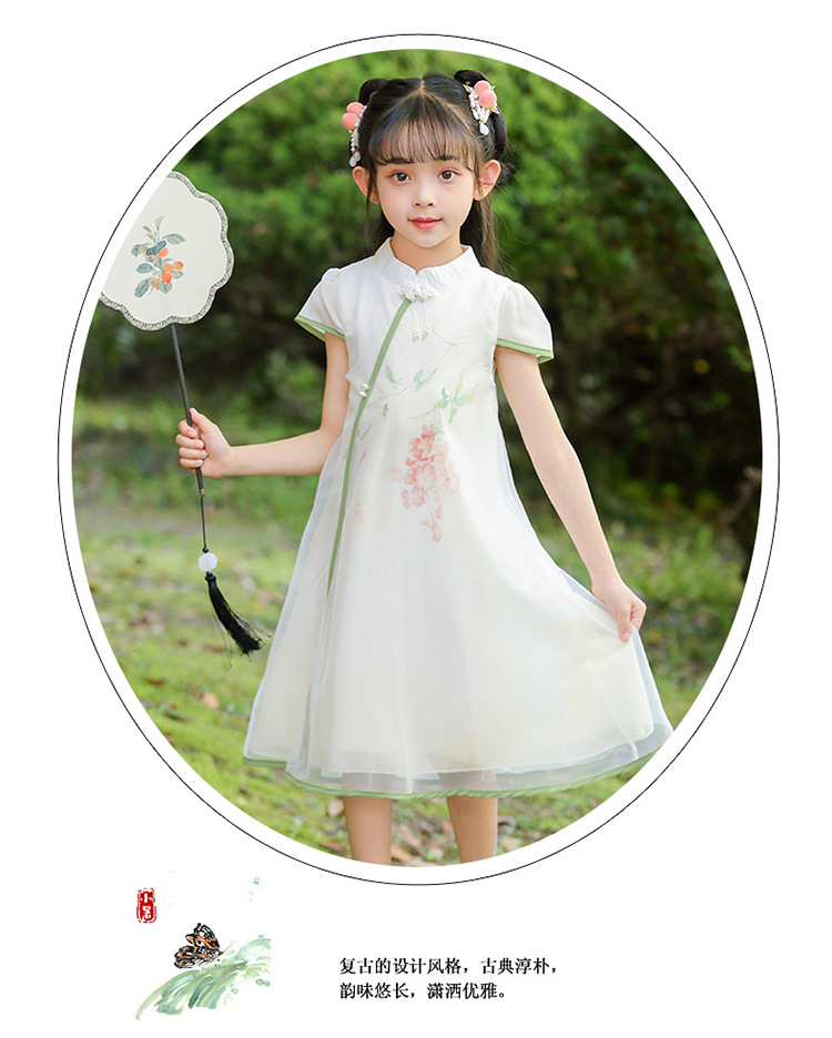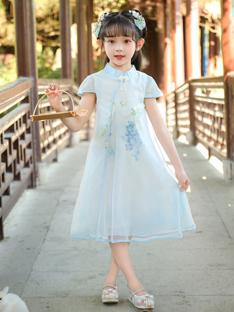 소녀 청삼 원피스 여름 2024 새로운 어린이 한푸 중국 스타일 소녀 치마 여름 서양식 얇은스토어 가기