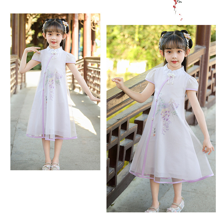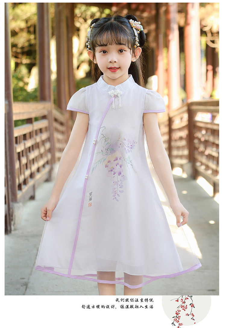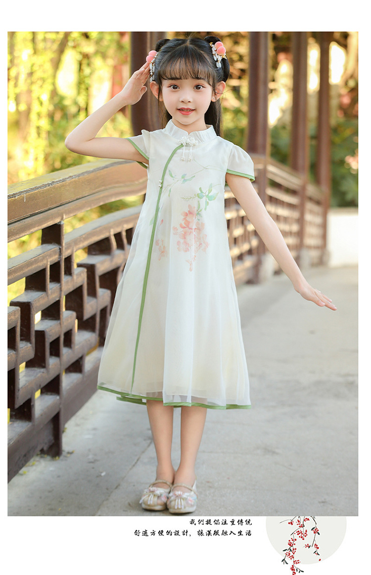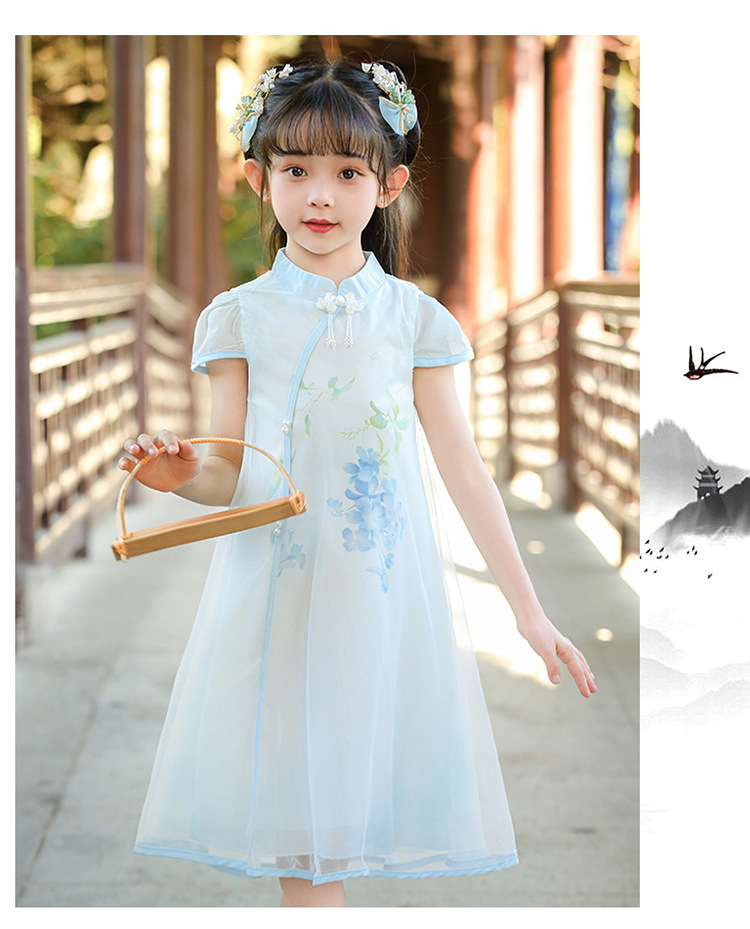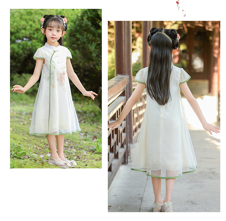 소녀 청삼 원피스 여름 2024 새로운 어린이 한푸 중국 스타일 소녀 치마 여름 서양식 얇은